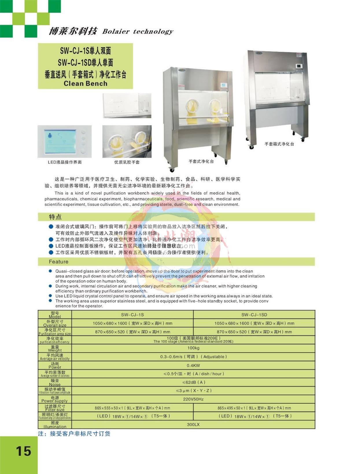 BOLEL PURIFICATION EQUIPMENT SW-CJ-1SD single person single-sided Laminar Flow Cabinet (glove type)1050*680*1600mm870*650*520mmLevel 100 (LIANBANG 209E)¥4340.0SE -