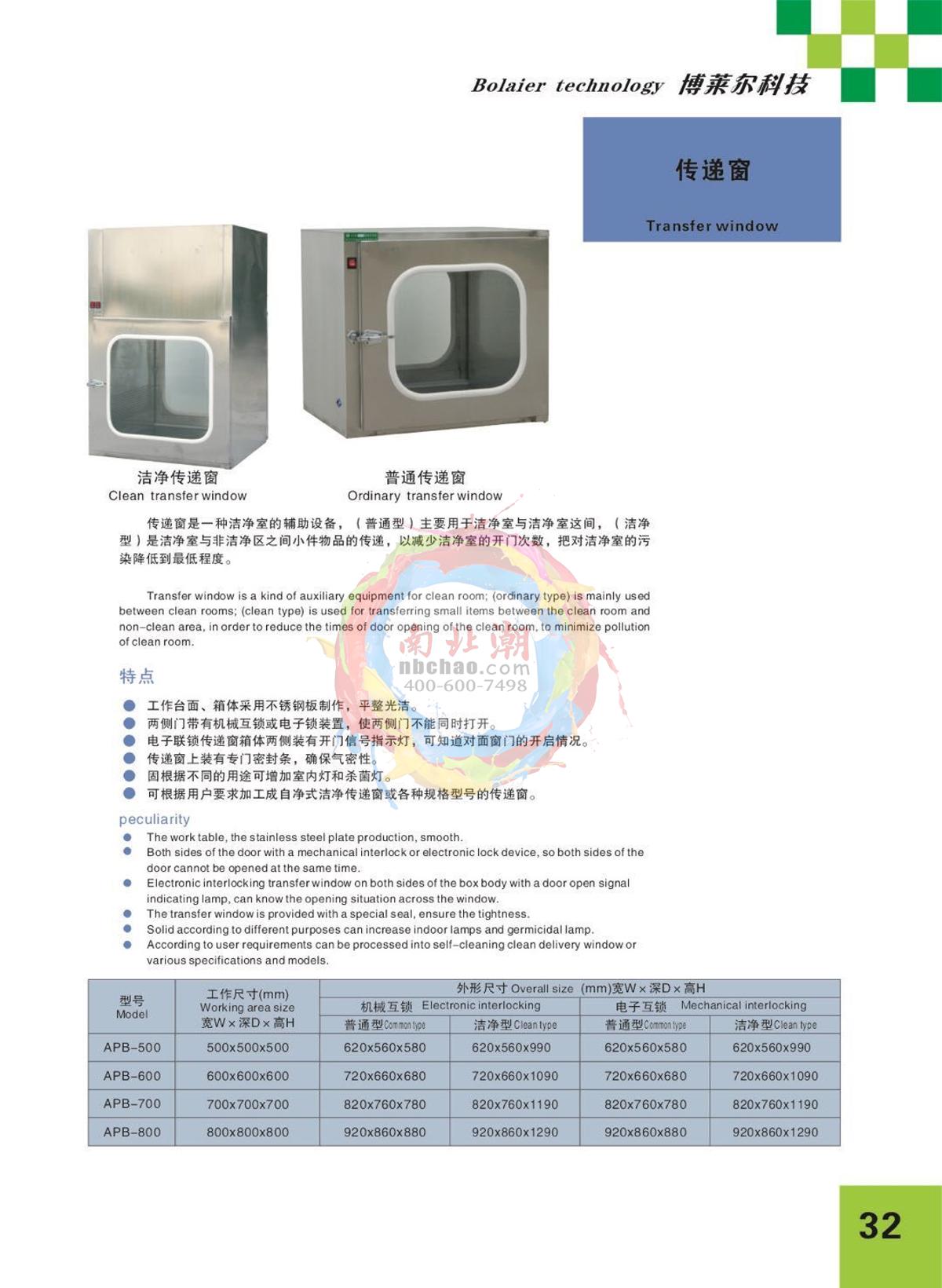 BOLEL PURIFICATION EQUIPMENT APB-600 Ordinary two-way transfer window (all stainless steel)600*600*600mm720*660*680mm¥2640.0SE -