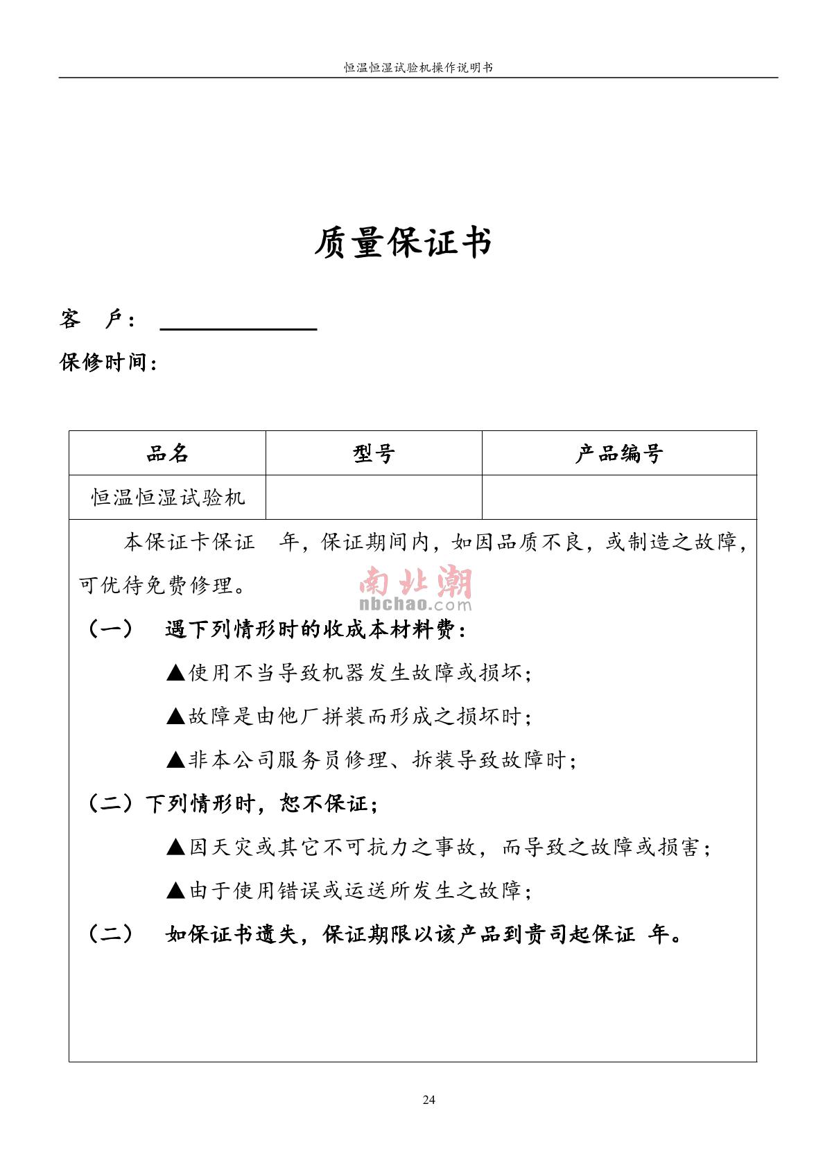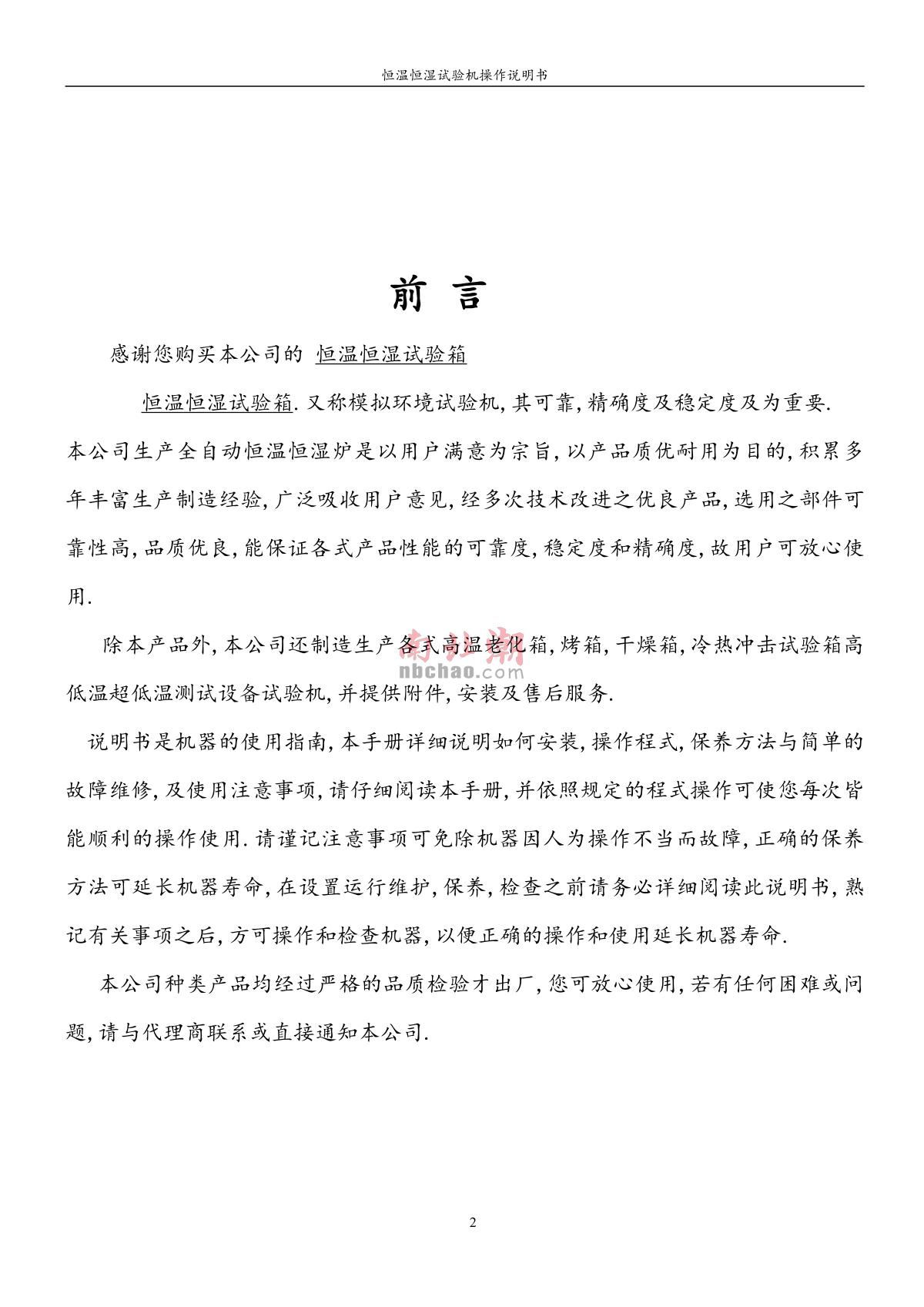 - 3HuiTai NBC-LHS-1000L Humidity Test Chamber Manual