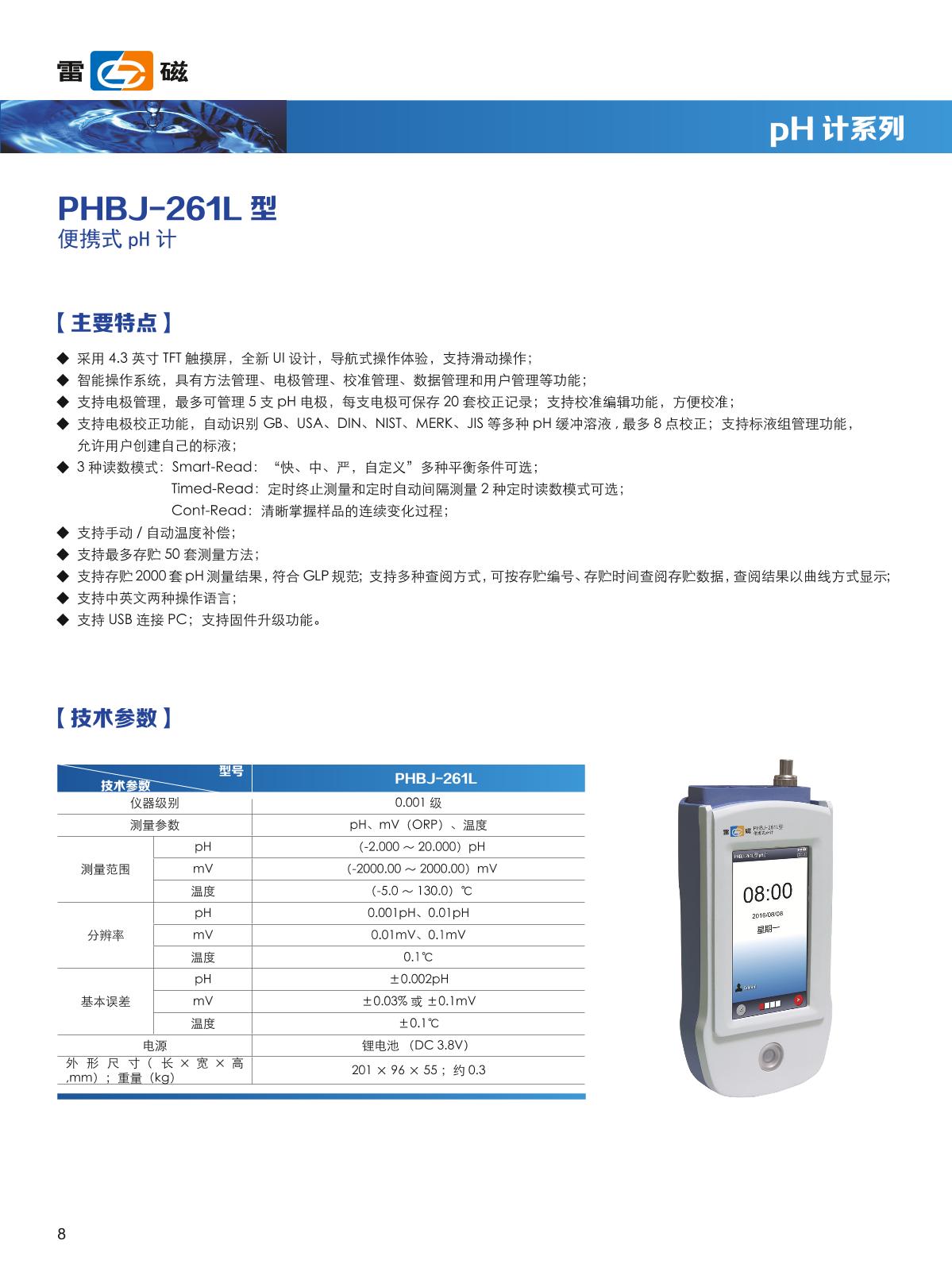 LeiCi PHBJ-261L Portable pH Meter brochure