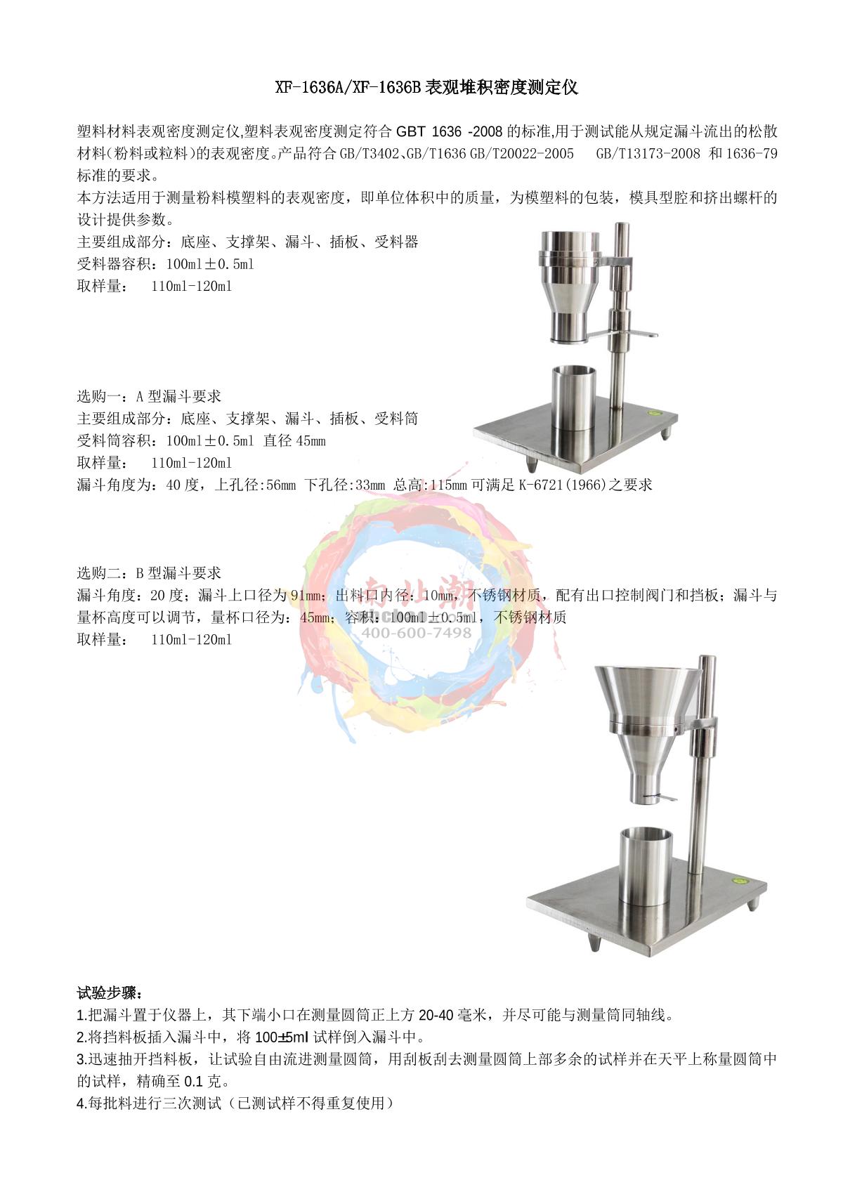 XIONGFA XF-1636A Apparent Accumulation Density Meter brochure