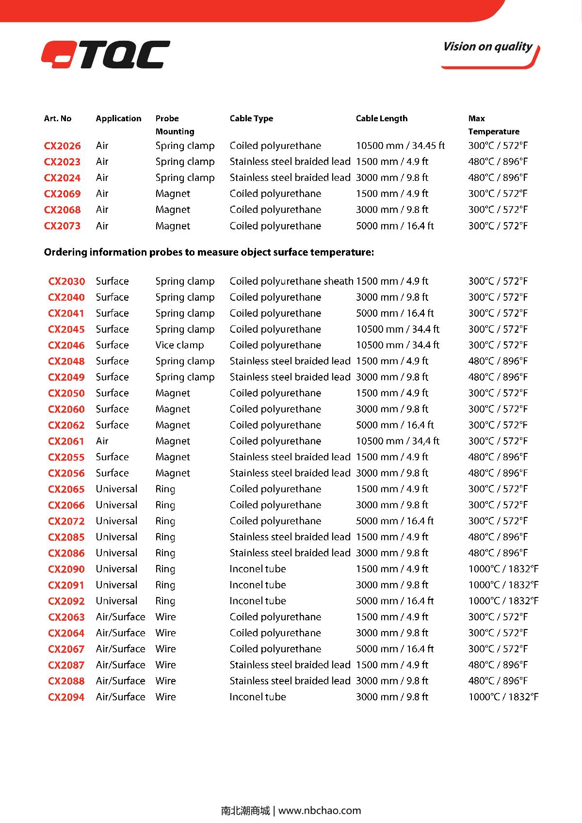- 4TQC sheen CX2069 Furnace temperature probe brochure