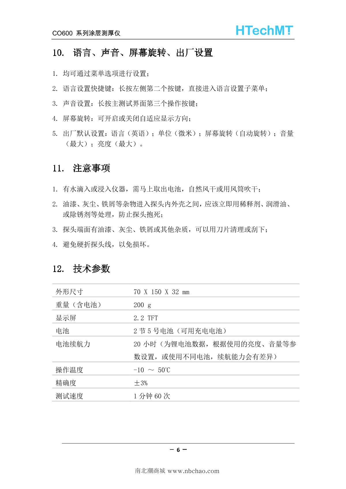 HTechMT CO600FAT2 Coating Thickness Gauge Manual,OI