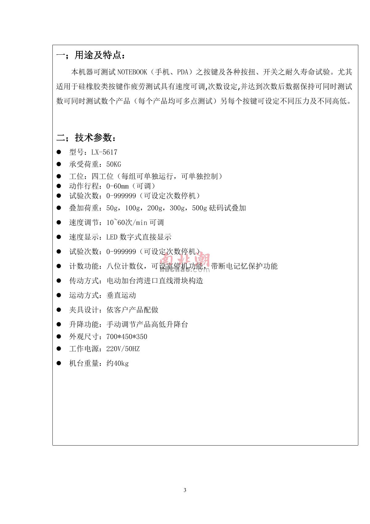 CHINA NBC-5617 Four-station button Life Cycle Tester, button aging testing device4 (working simultaneously)Four each of 50, 100, 200, 300, and 500g (optional)0~99999999 times (can be preset, LCD display)¥4100.0SE