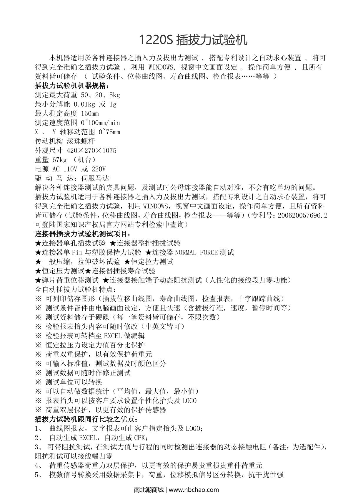 CHINA NBC-1220S Vertical Plug-in Life Tester, Terminal Harness Tester50Kg,20Kg, 5Kg0.01Kg或1g150mm¥21750.0SE -