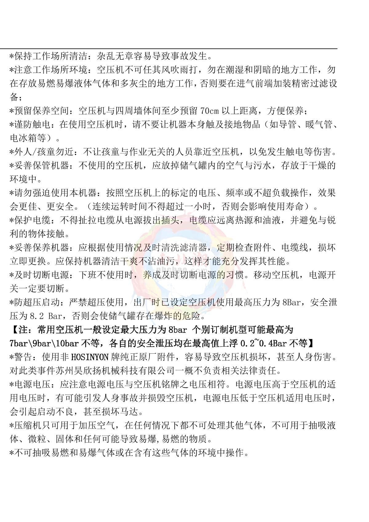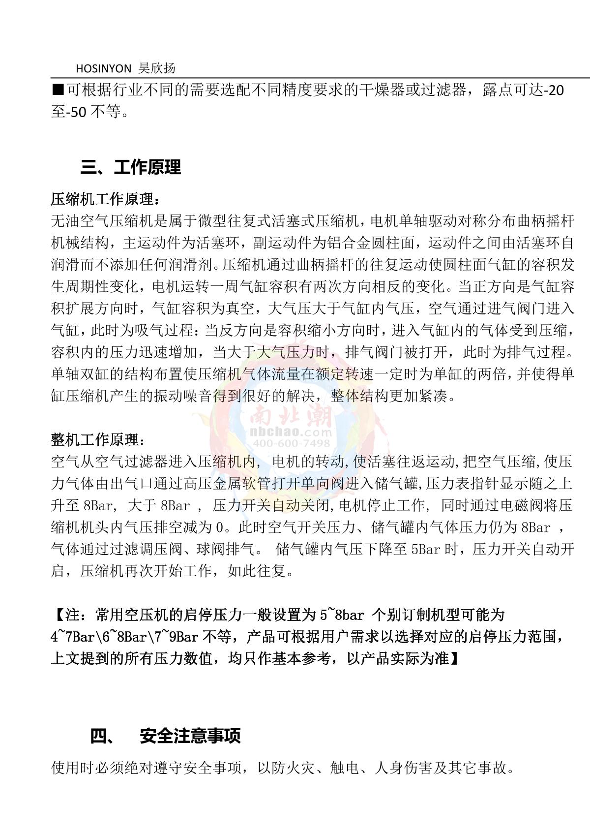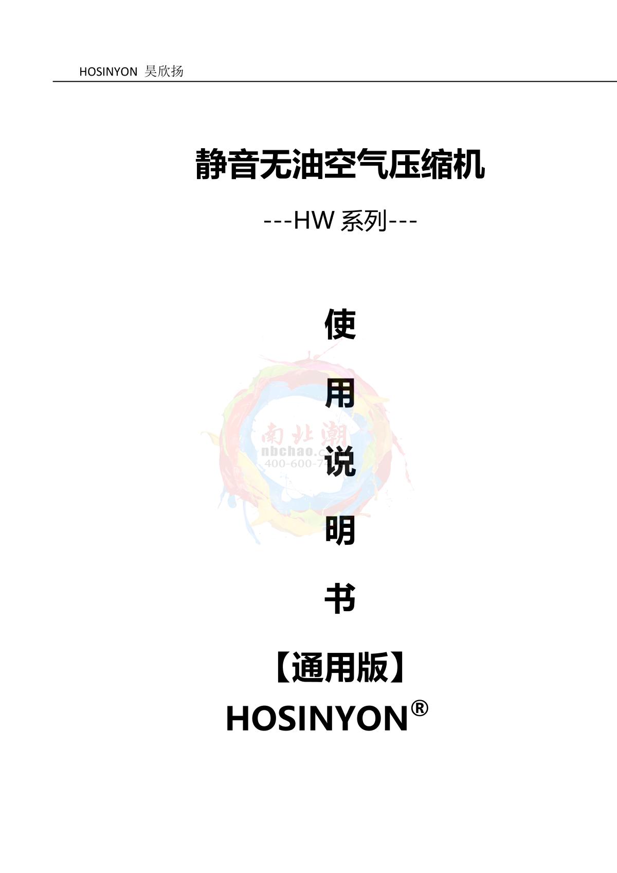 HaoXinYang HW72 Silent Oil Free Air Compressor Manual,OI