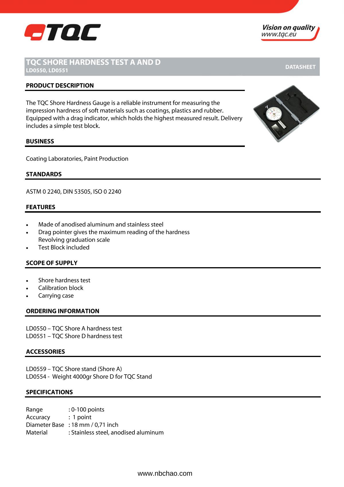 TQC sheen LD0551 Shaw durometer brochure