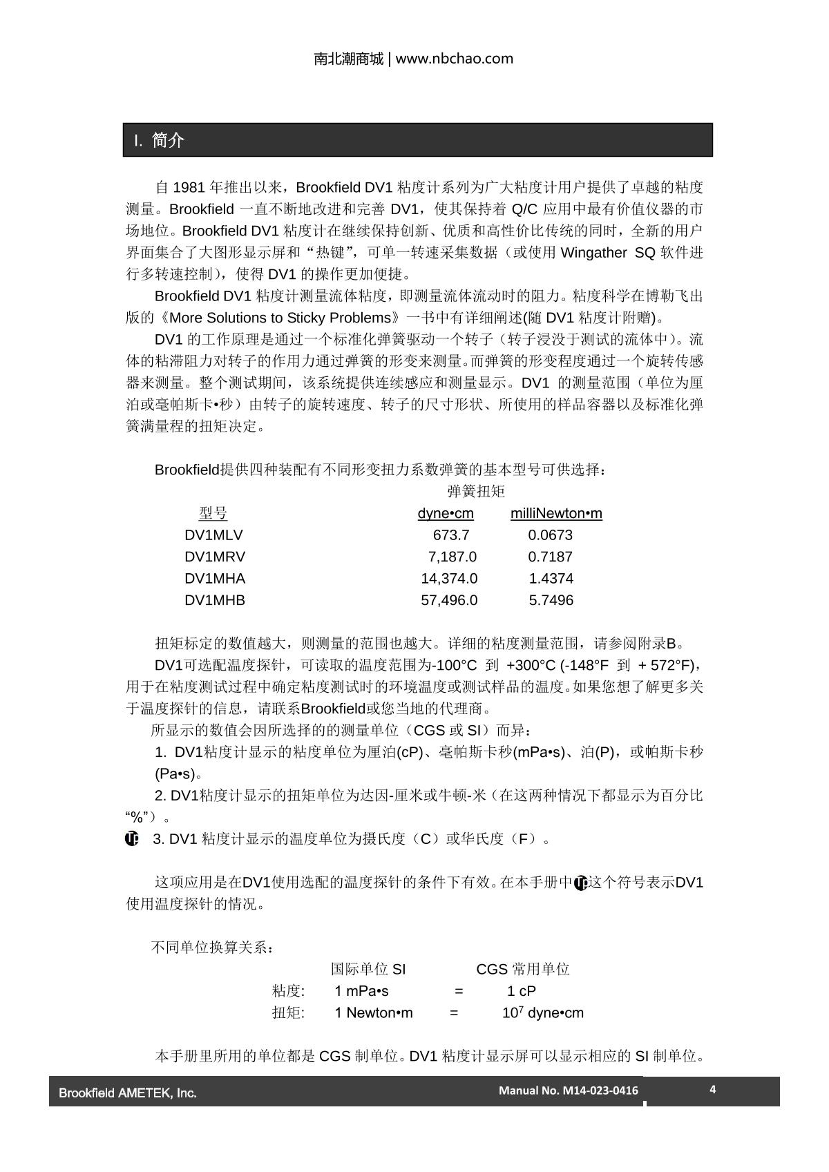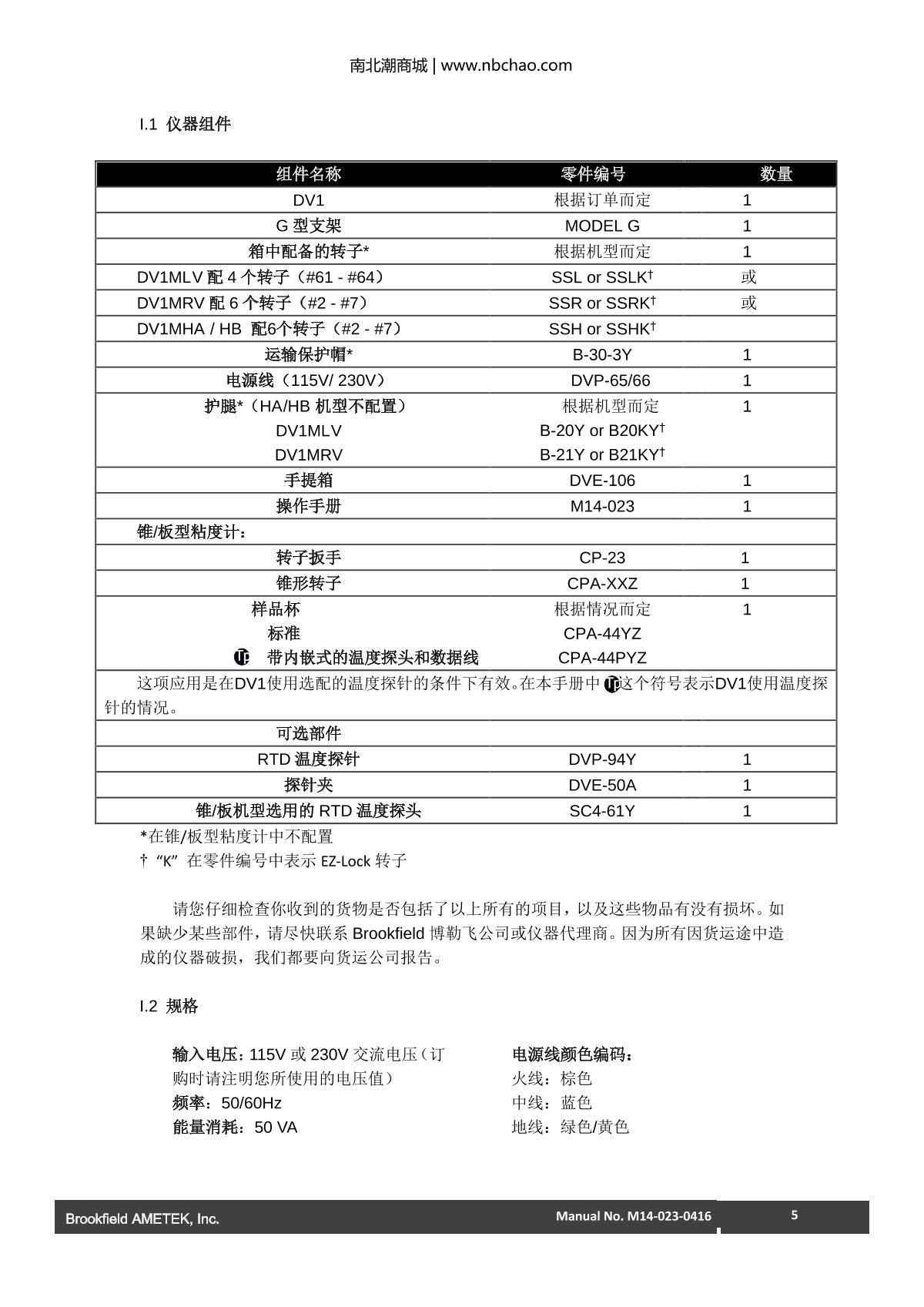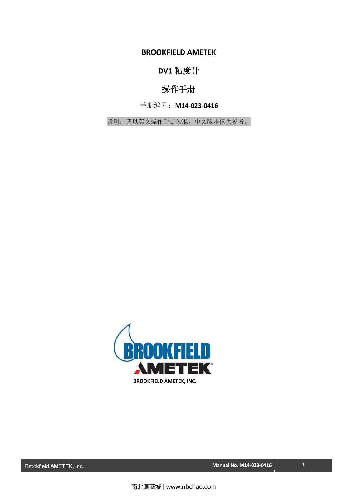 Brookfield DV1MHB Rotational Viscometer Manual,OI