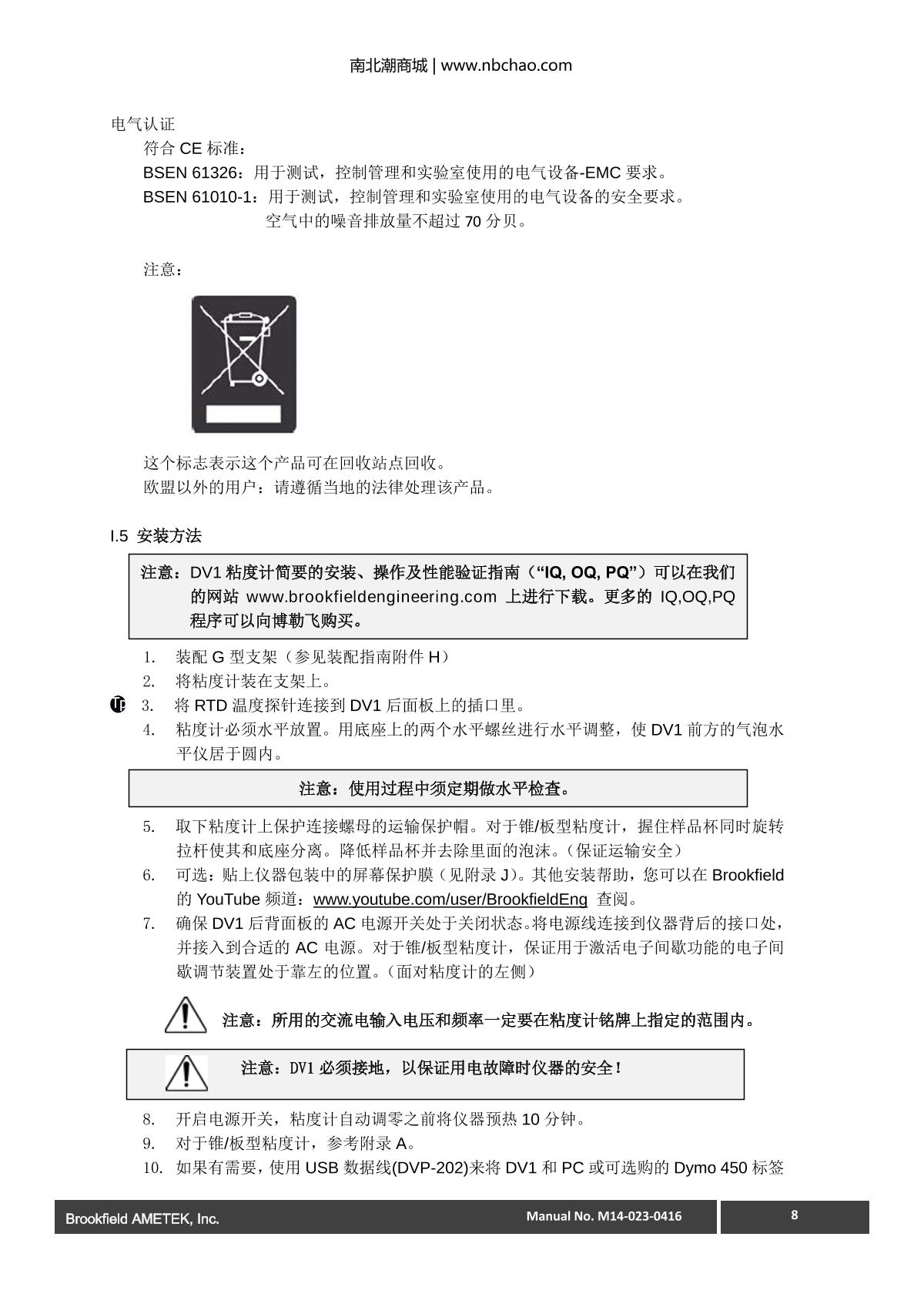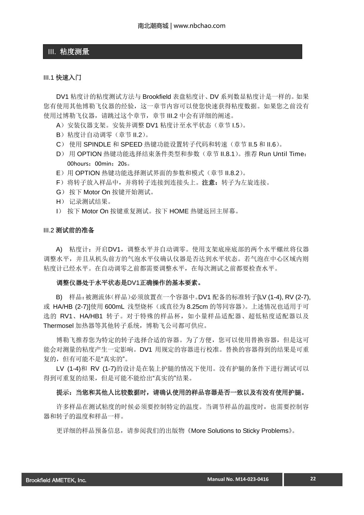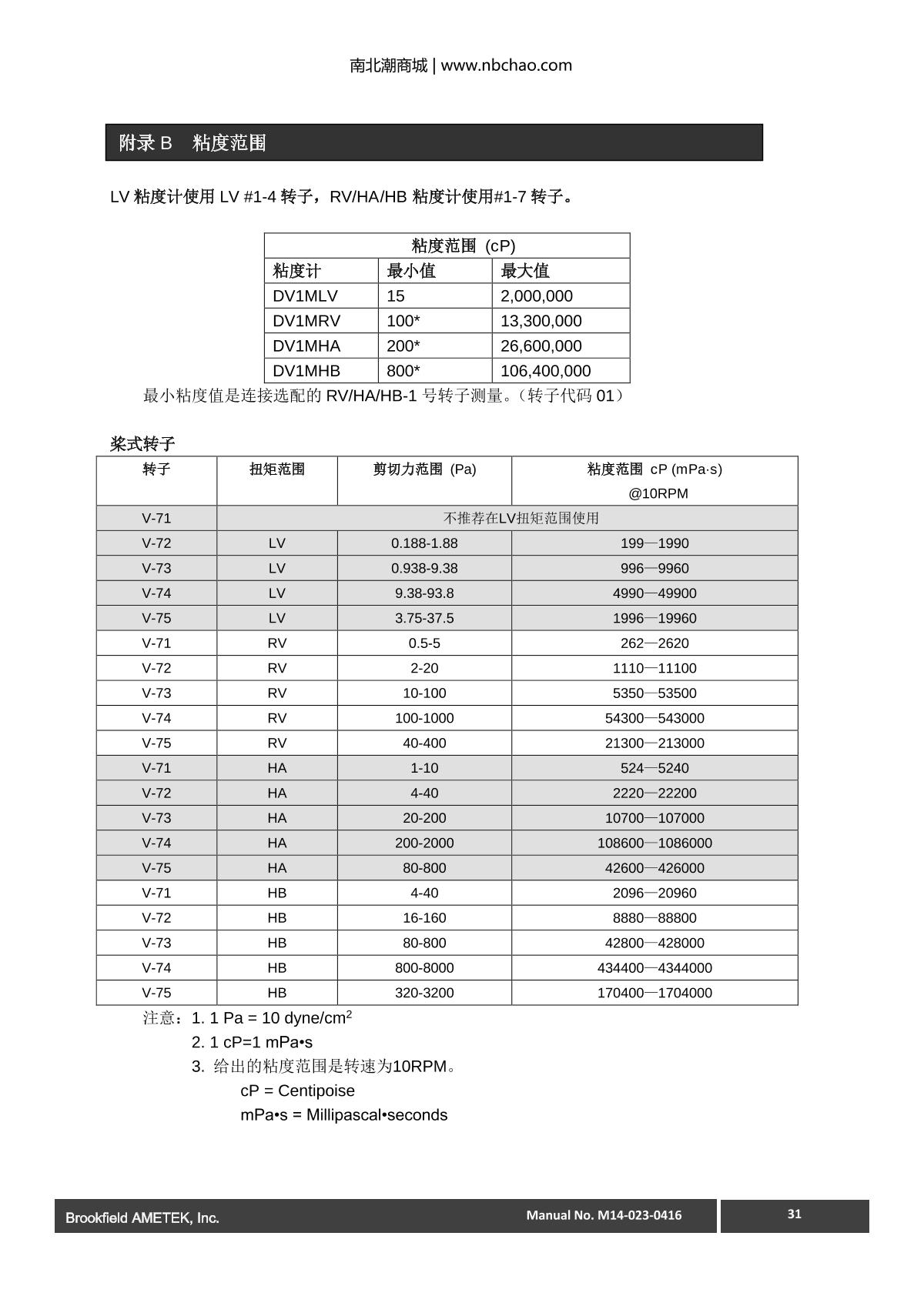 Brookfield DV1MHB Rotational Viscometer Manual,OI