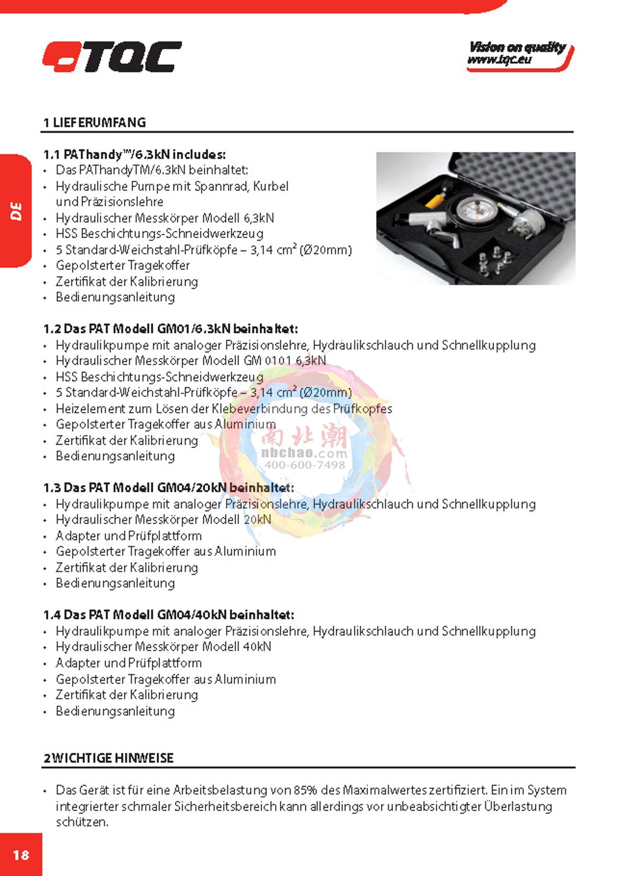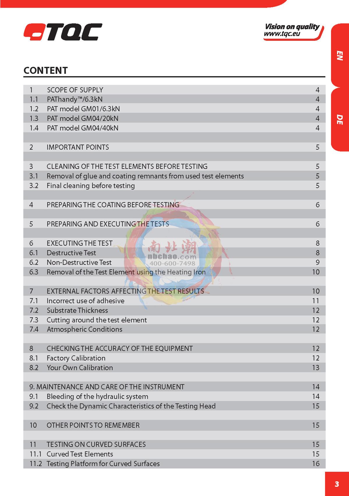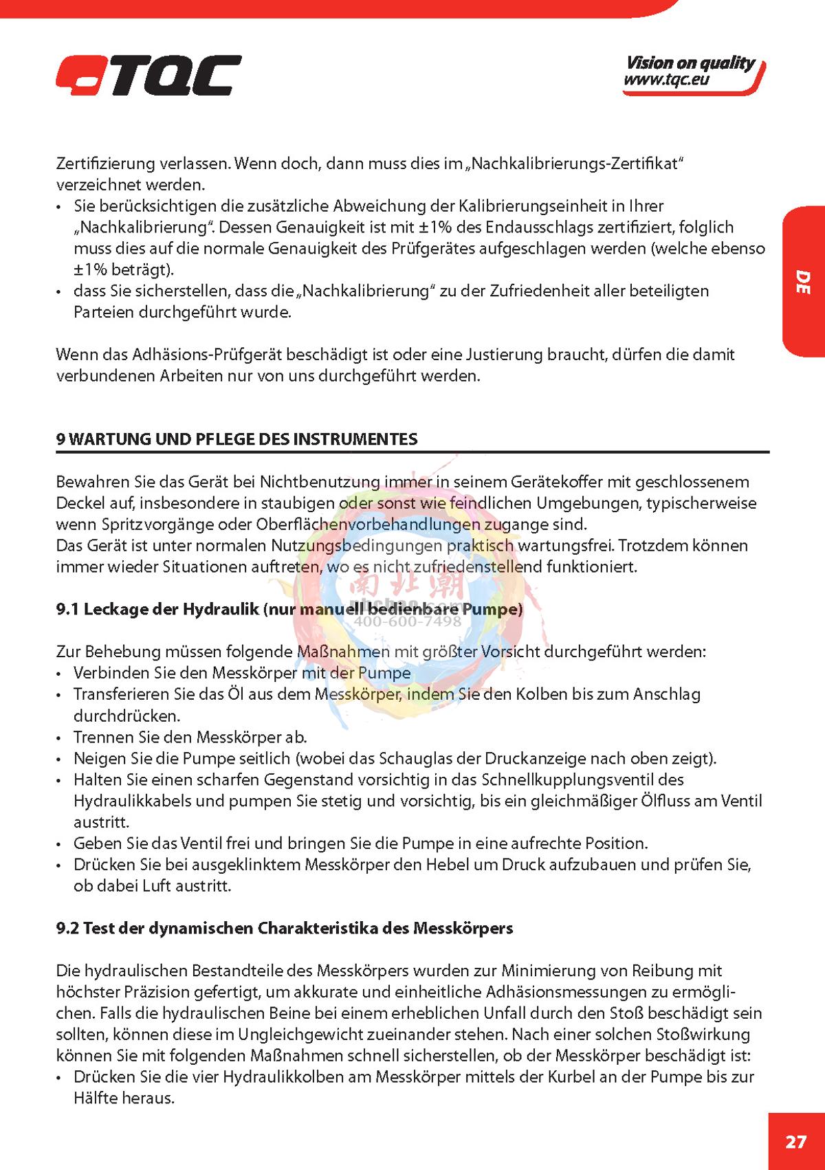 TQC sheen LD9200 Hydraulic Adhesion Tester Manual,OI