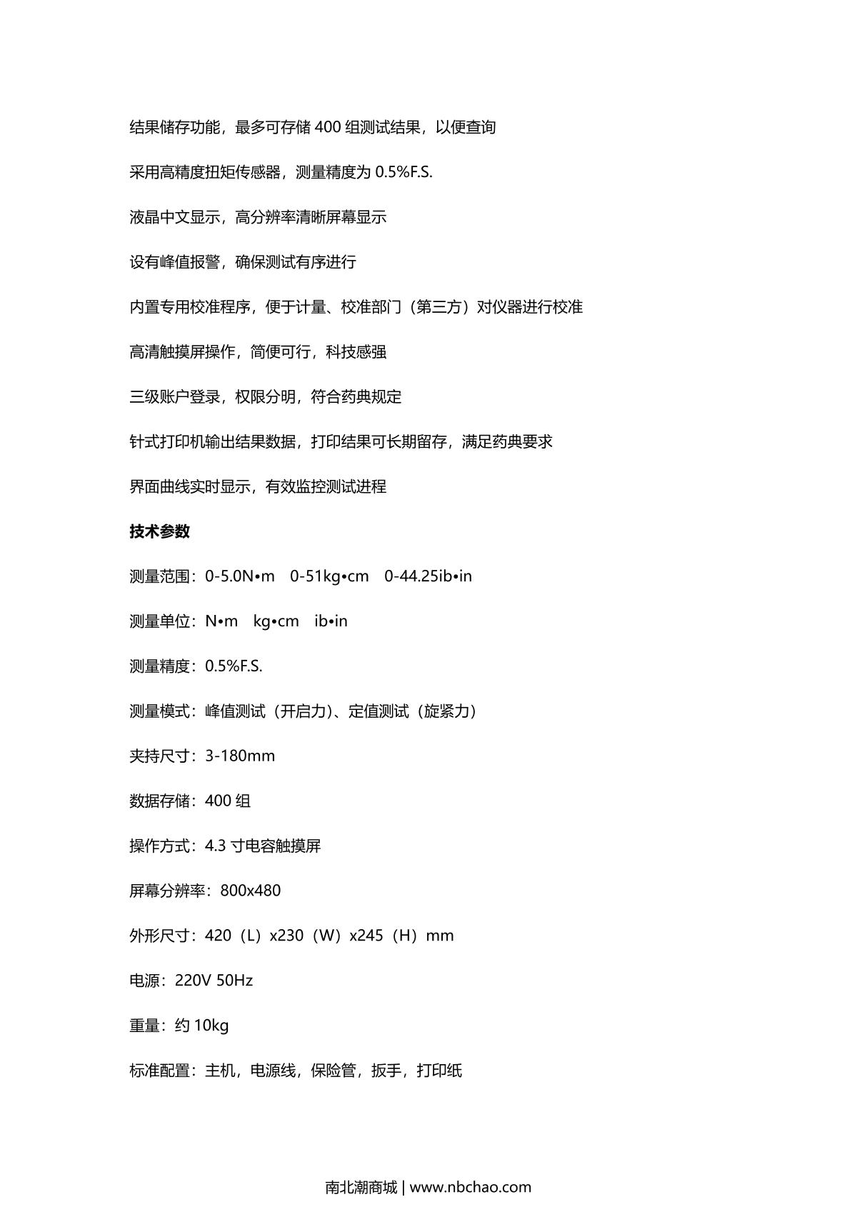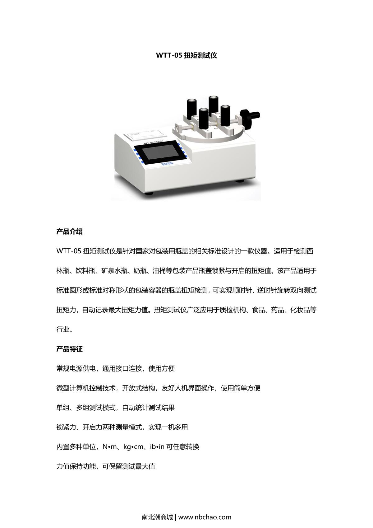 WTT-05 Torque Tester, three-level management, touch screen, micro printer0-5.0N•m 0-51kg•cm 0-44.25ib•inN.m、kgf.cm、lbf.in0.5%F.S.¥6400.0SE -