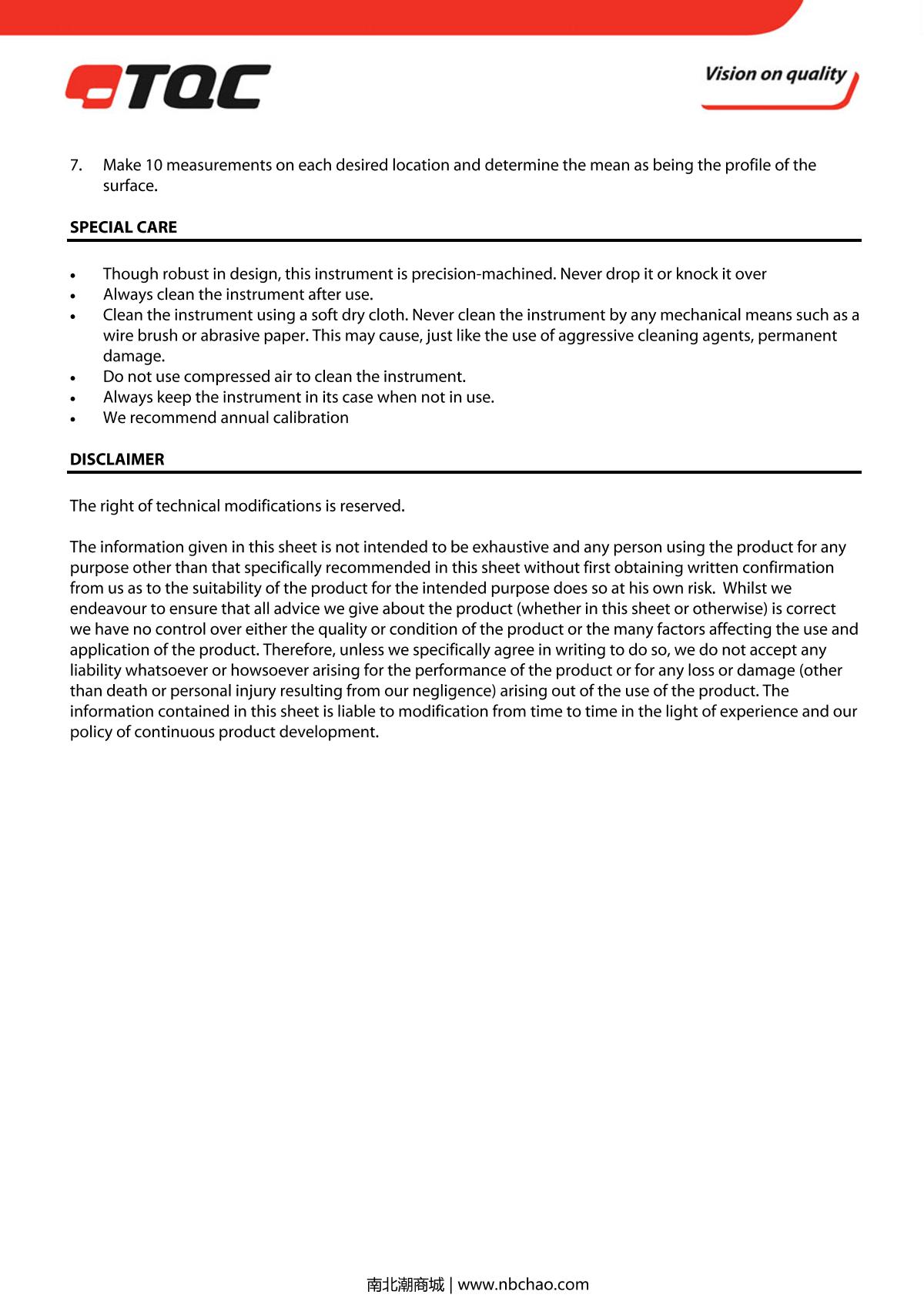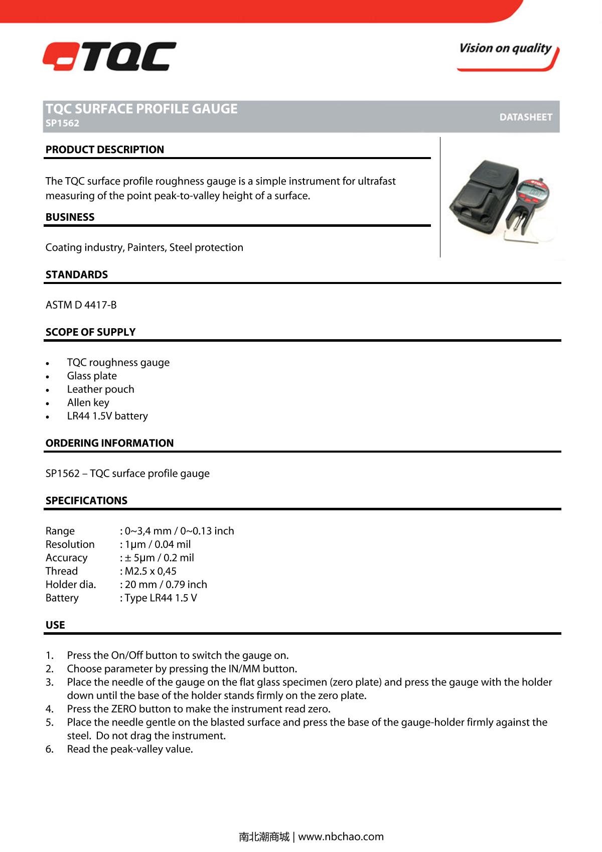 TQC sheen SP1562 Coating Roughness Gauge brochure