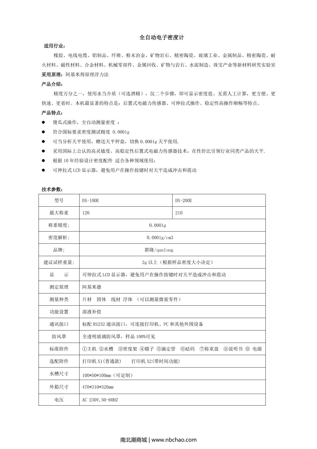 qunlong DX-100E Density Balance brochure