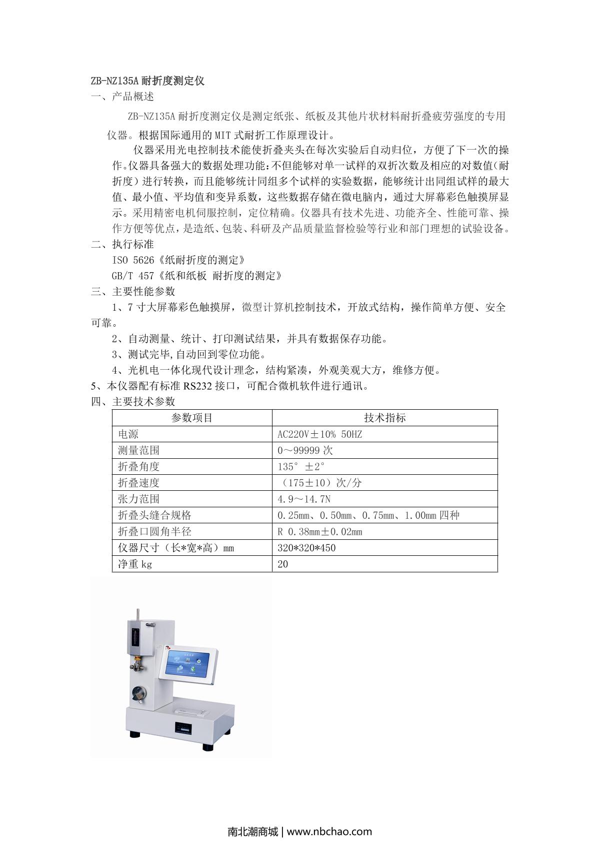 ZhiBang ZB-NZ135A MIT Folding Tester brochure