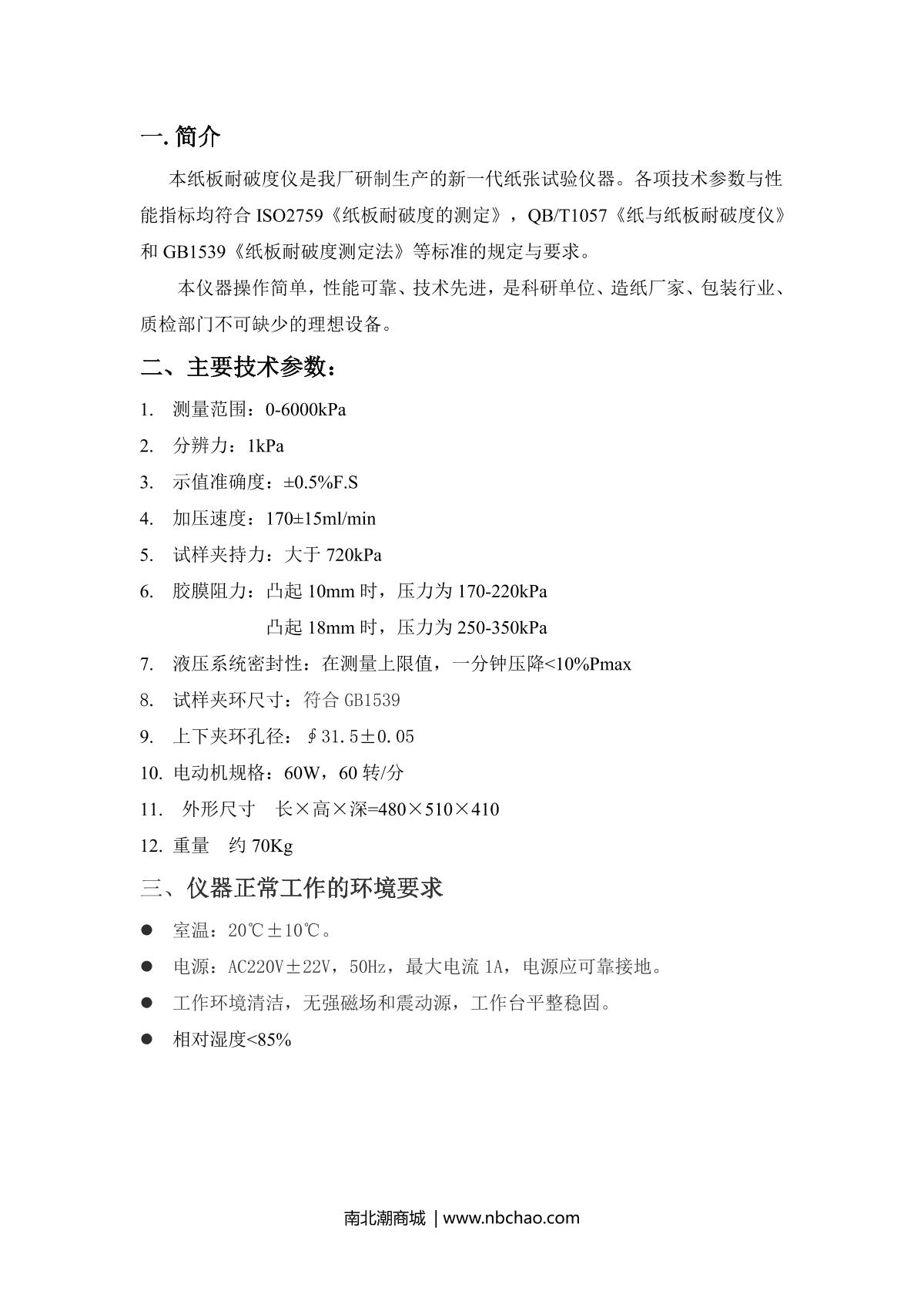 ZhiBang ZB-NPY5600 Pneumatic Cardboard Burst Tester Manual,OI