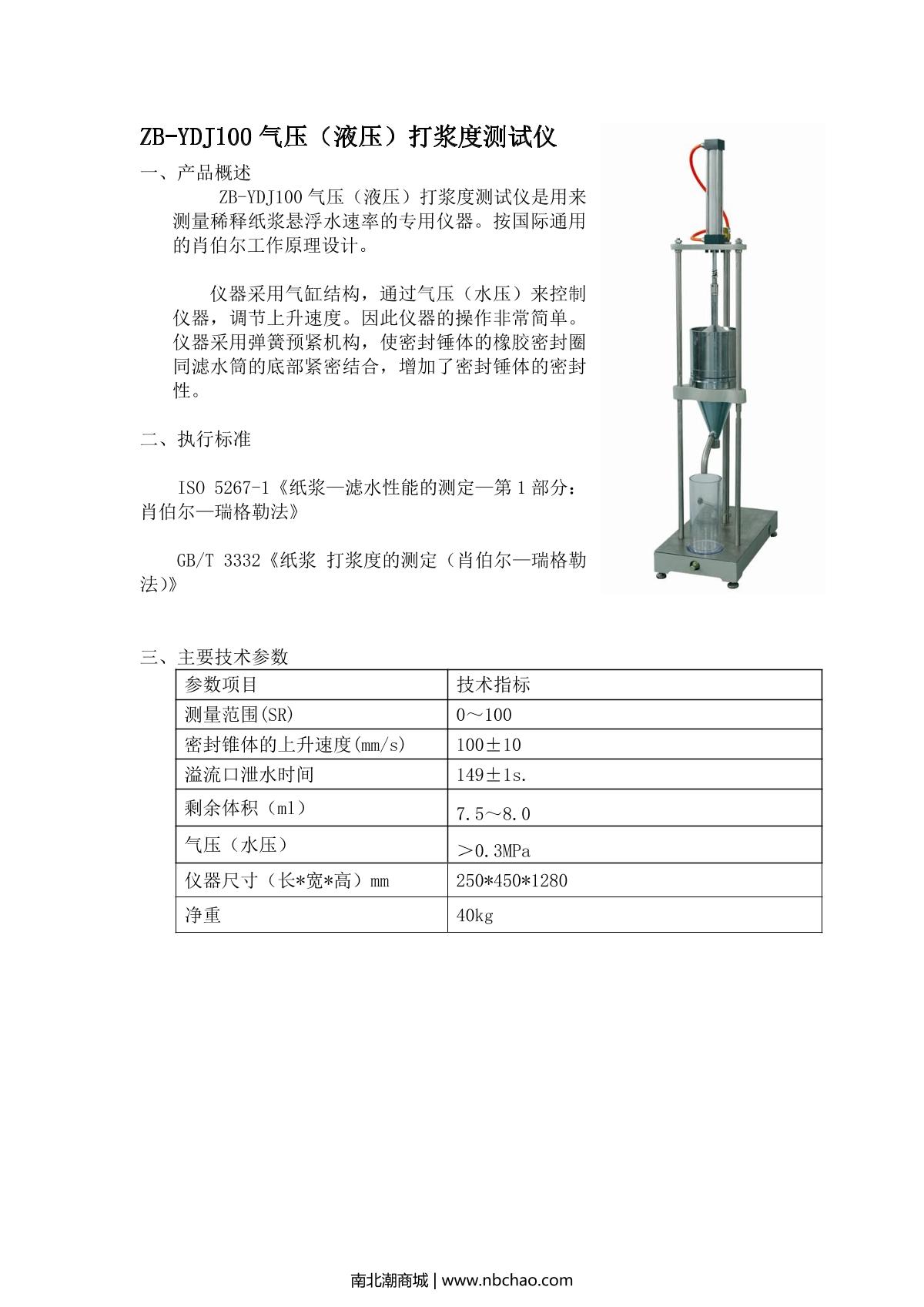 ZhiBang ZB-YDJ100 Pneumatic (Hydraulic) Freeness Tester brochure