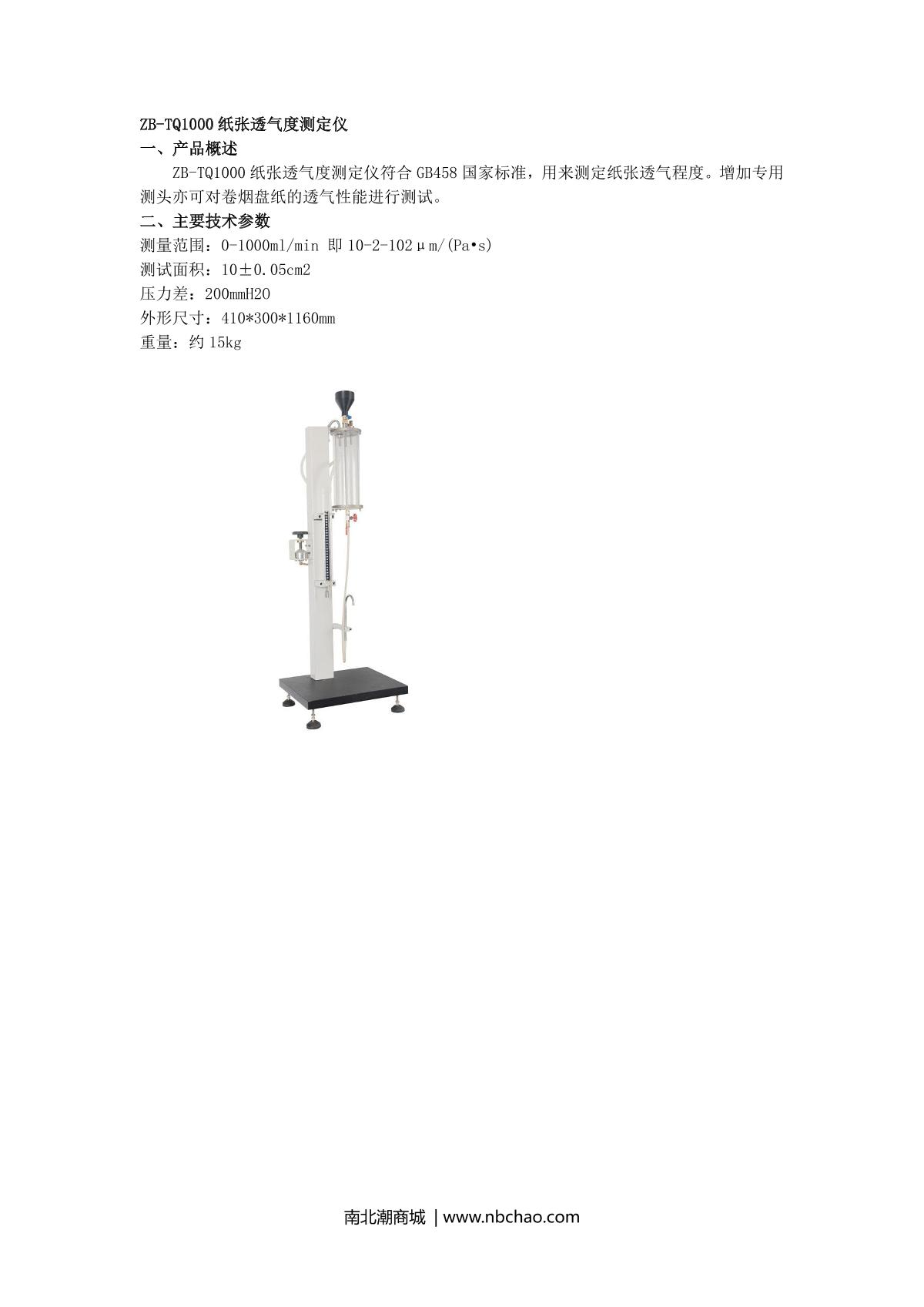 ZhiBang ZB-TQ1000 Porosity Tester brochure