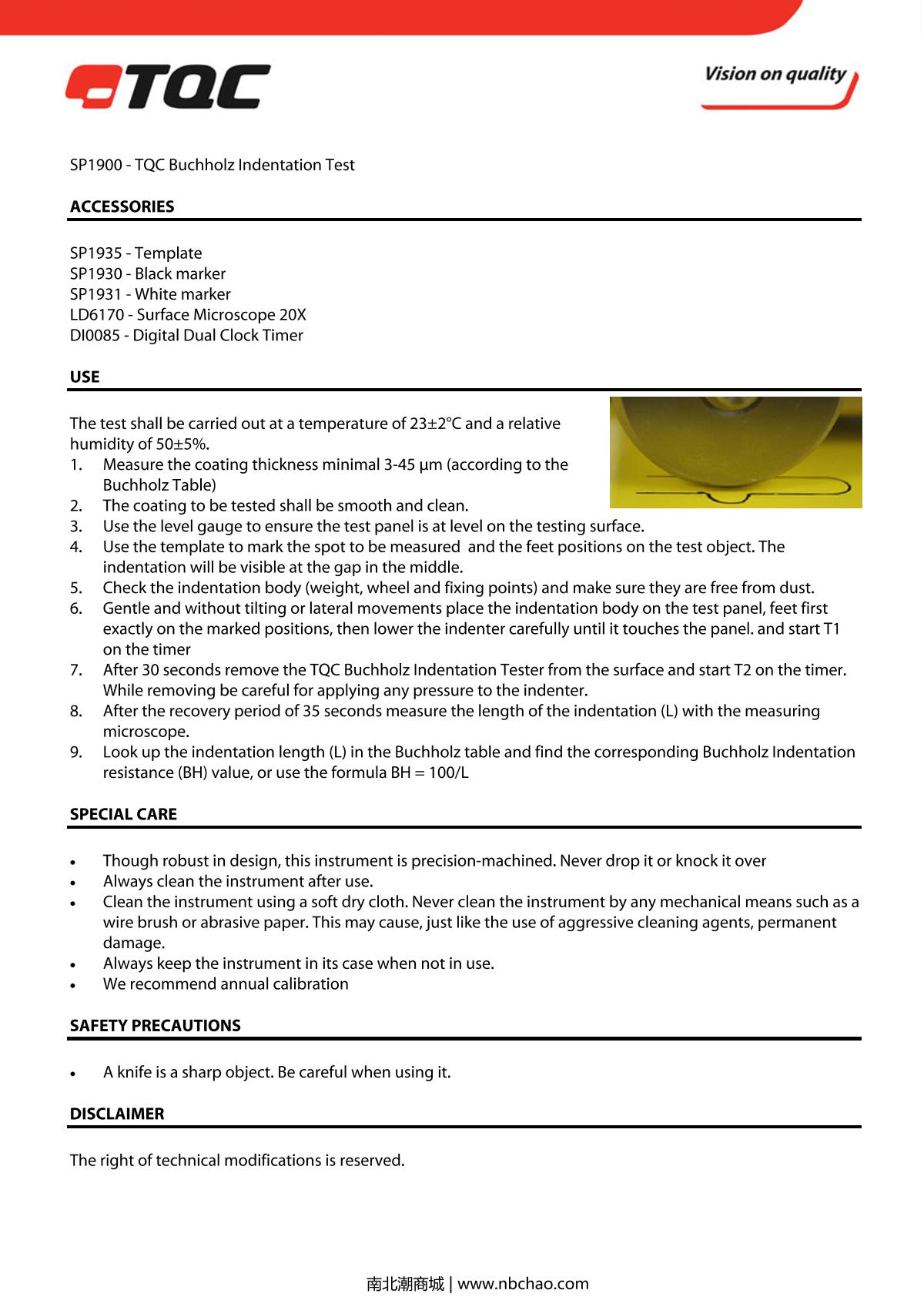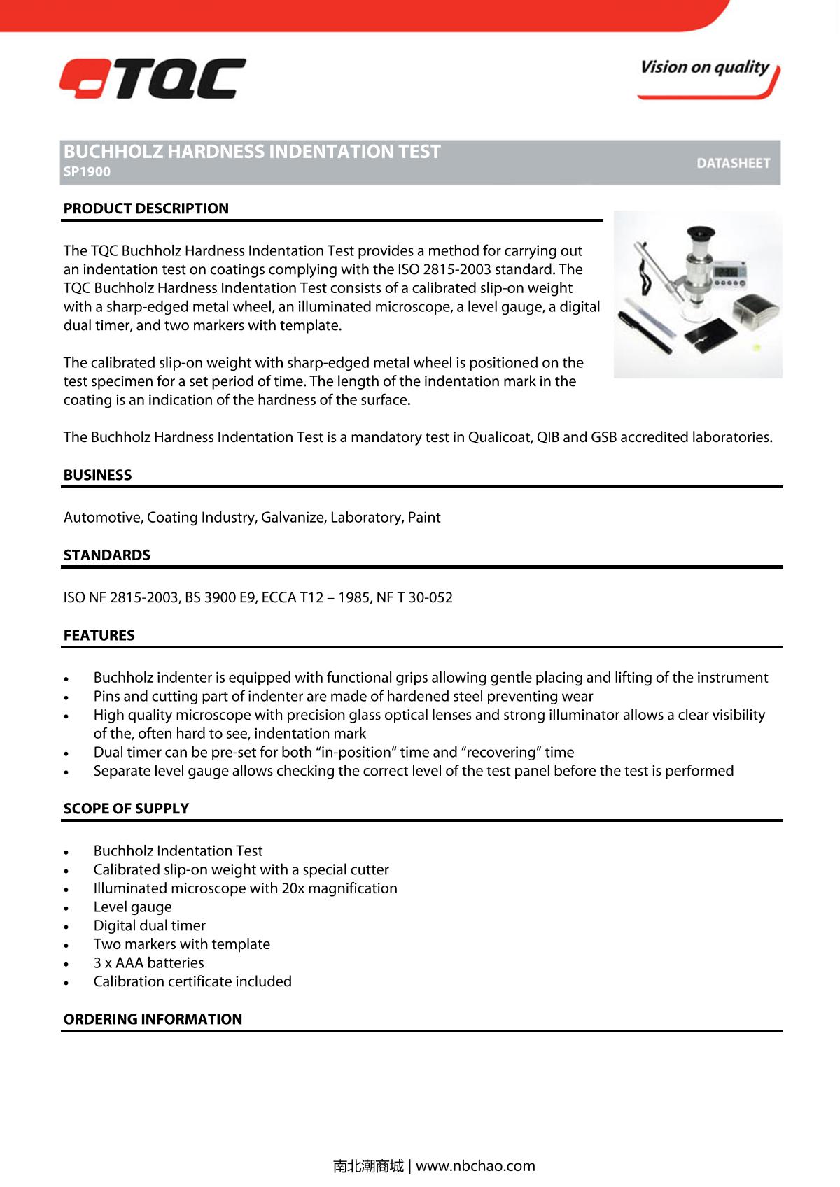 TQC sheen SP1900 Indentation Hardness Tester brochure