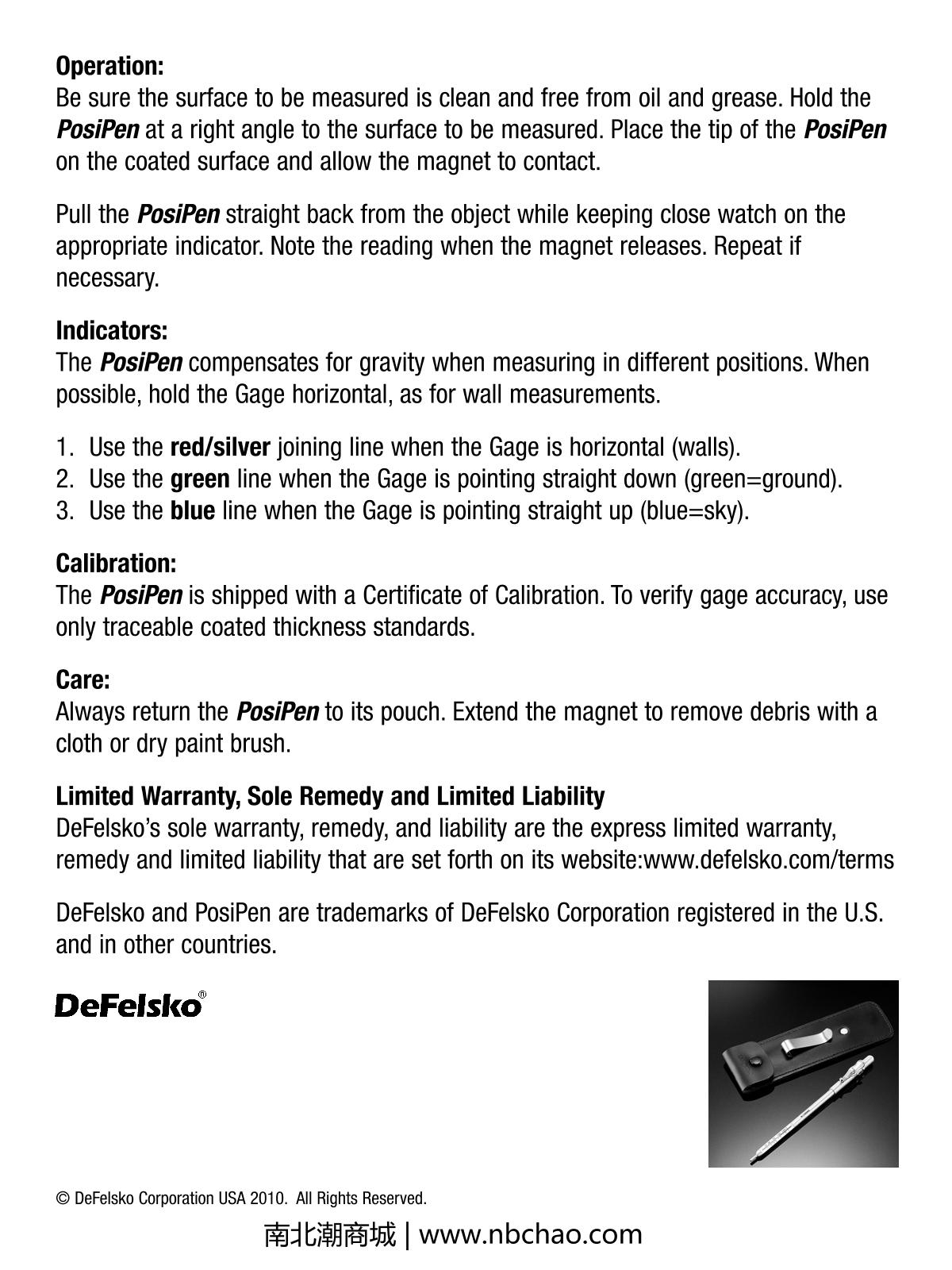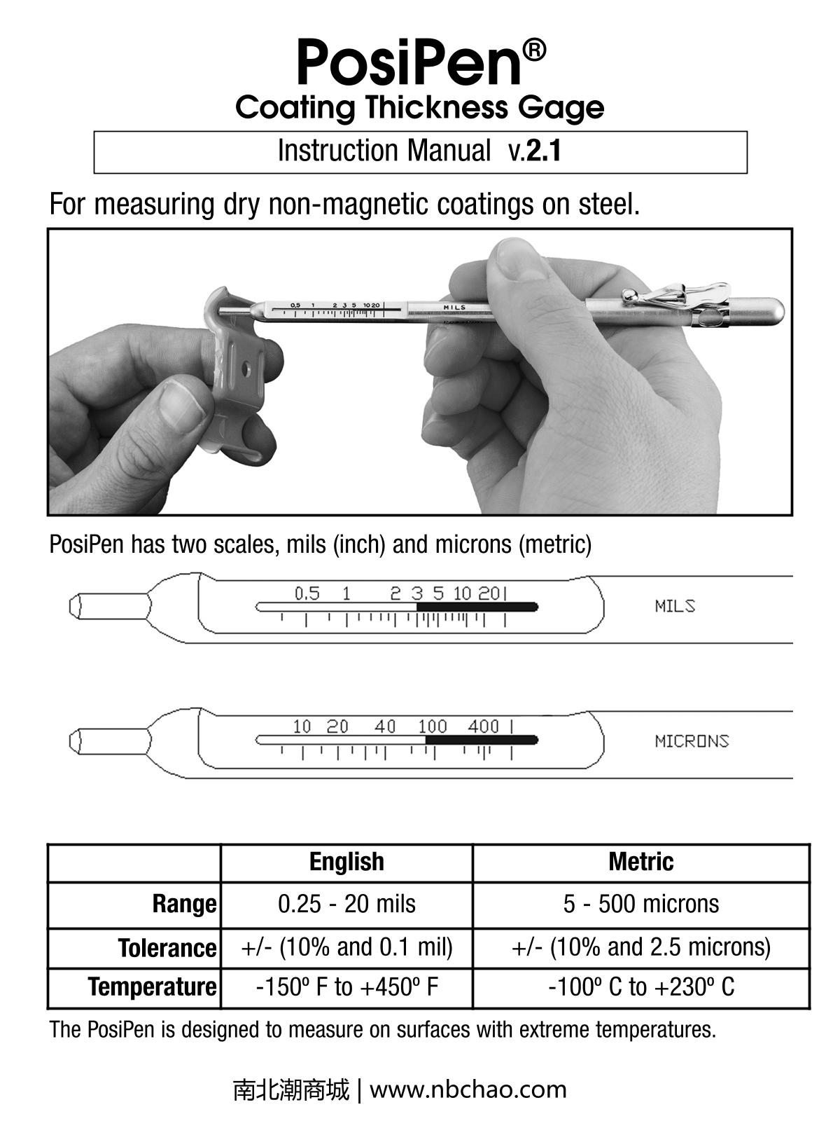 Defelsko PosiPen Coating thickness instrument Manual,OI
