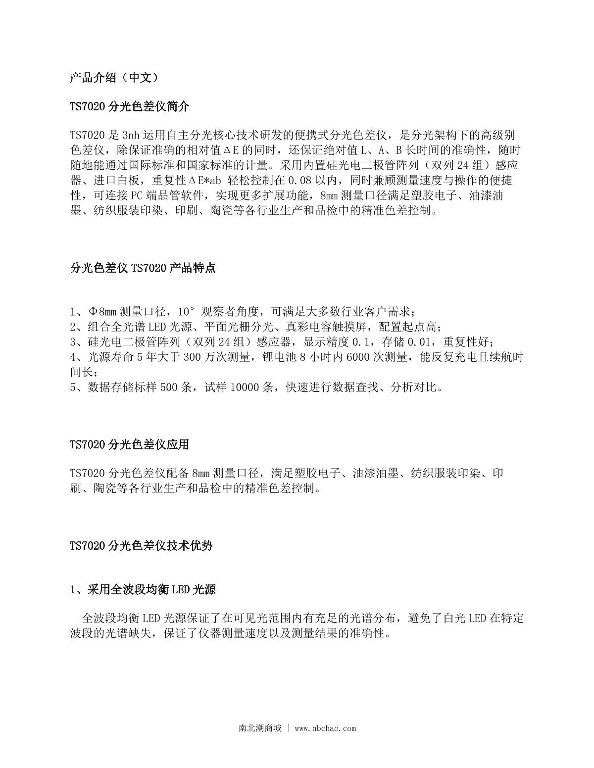 3NH TS7020 Colorimeter brochure