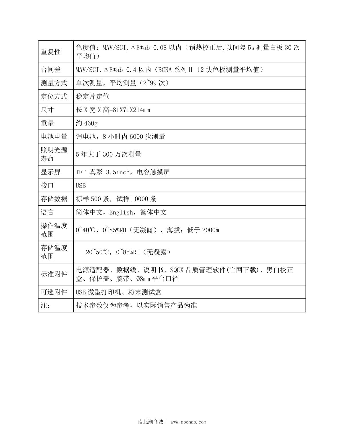3NH Colorimeter MAX color difference treasure, enhanced version, over-MeasurementD/8 (diffuse illumination, 8 ° direction reception, including specular reflection SCI), in line with standard CIE No.15, GB/T 3978F20mmLight spectrum LED light source¥800.0SE -
