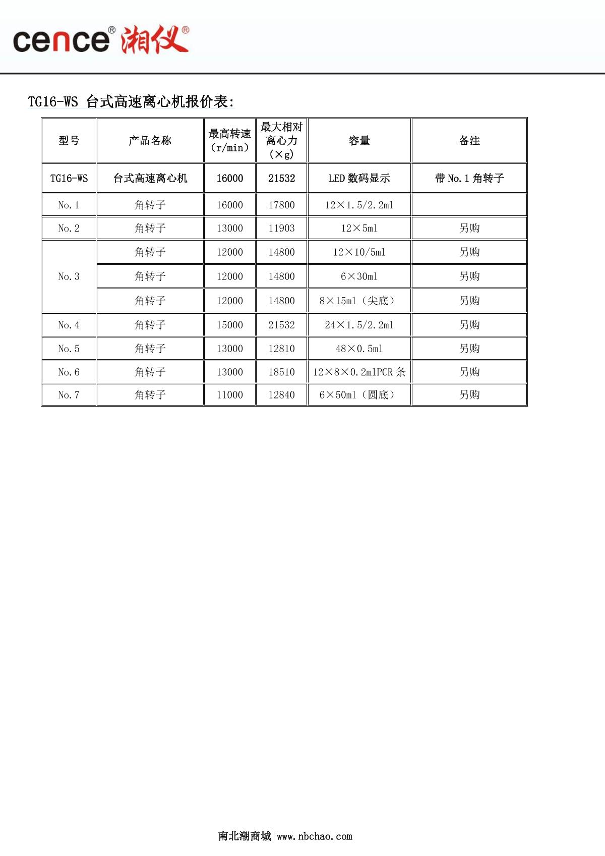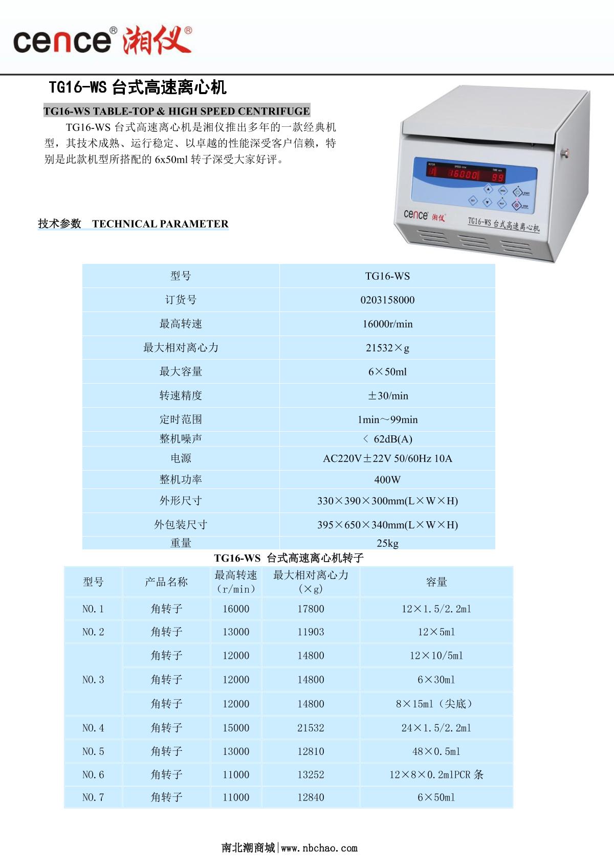 cence TG16-WS Desktop High Speed Centrifuge brochure