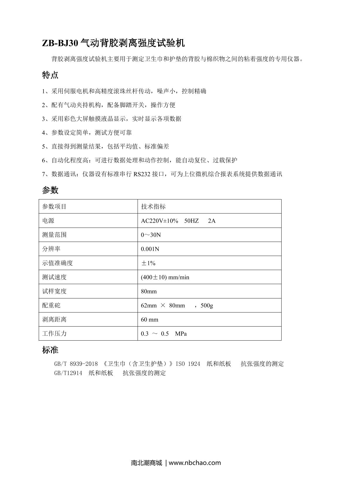 ZhiBang ZB-BJ30 Pneumatic adhesive Peel strength Tester brochure
