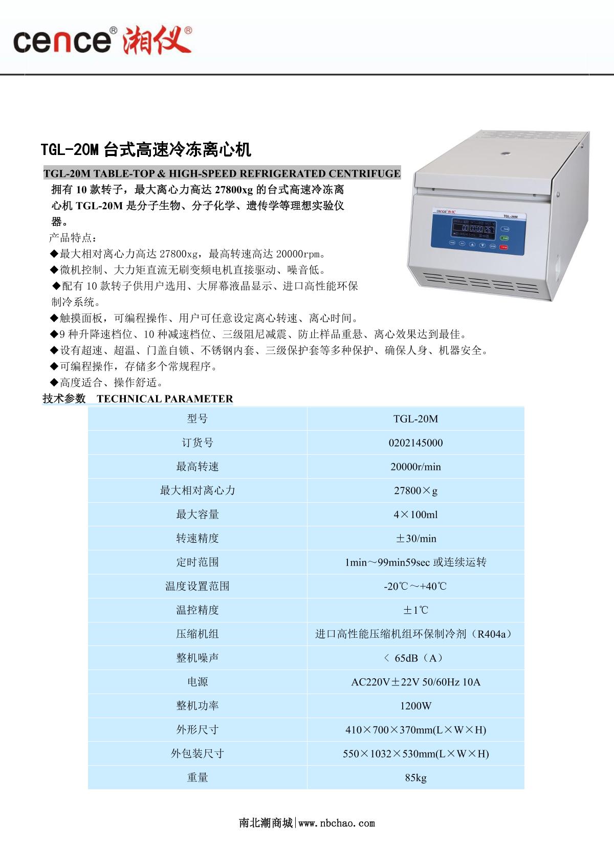 cence TGL-20M High Speed Refrigeration Centrifuge brochure