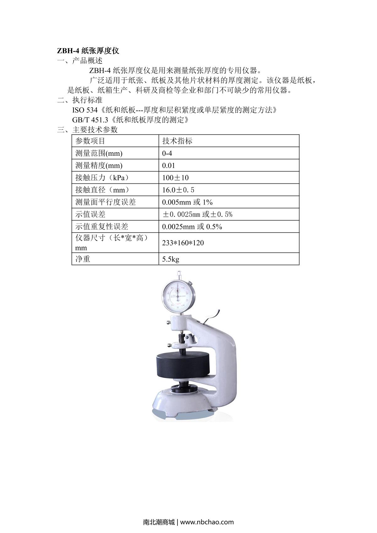 - 3ZhiBang ZBH-4 (thousandth) Paper and Cardboard Thickness Meter brochure