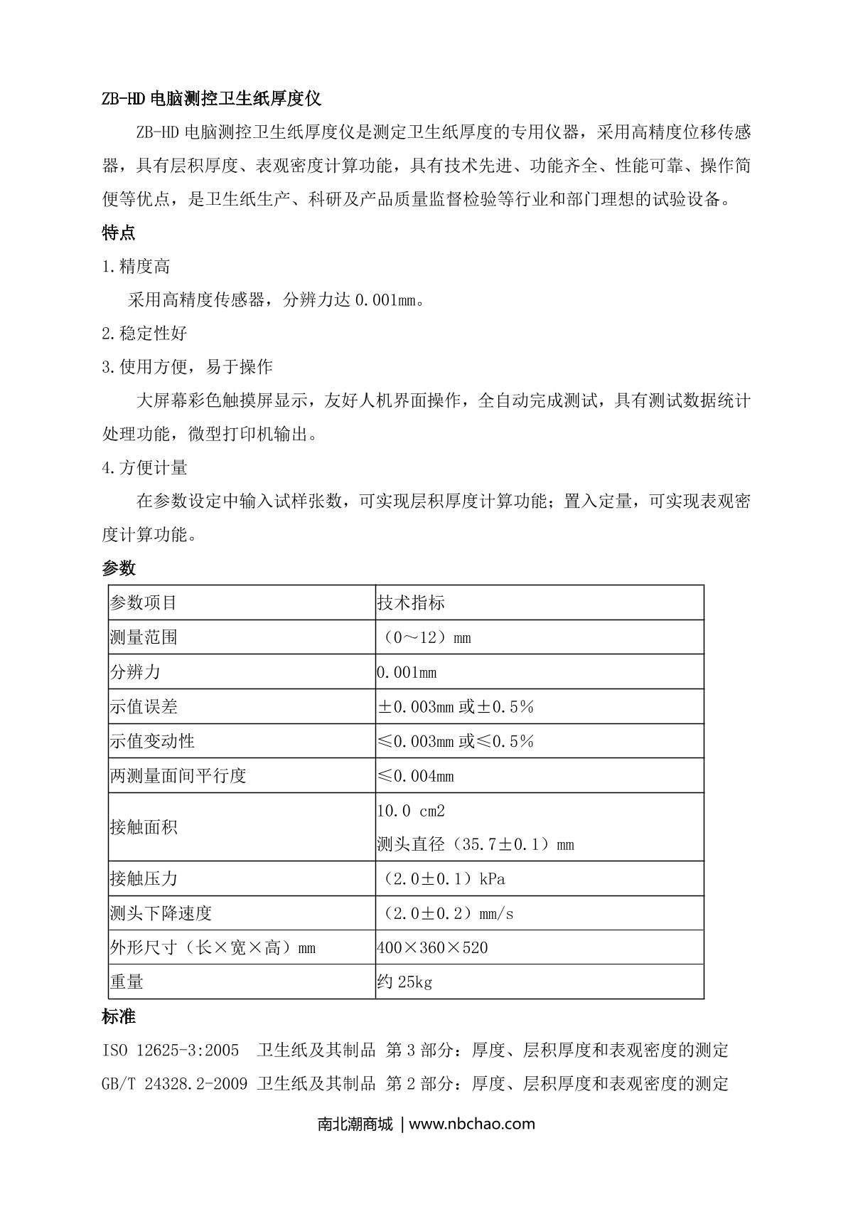 ZhiBang ZB-HD Computer Measurement and Control Toilet Paper Thickness Meter brochure