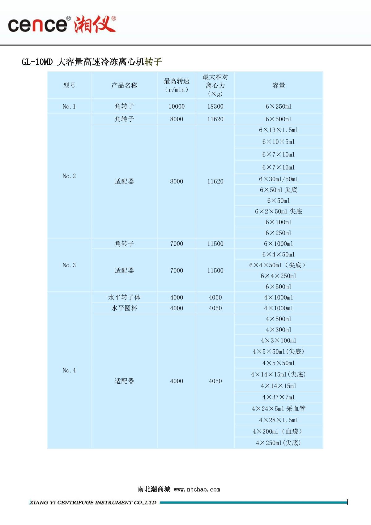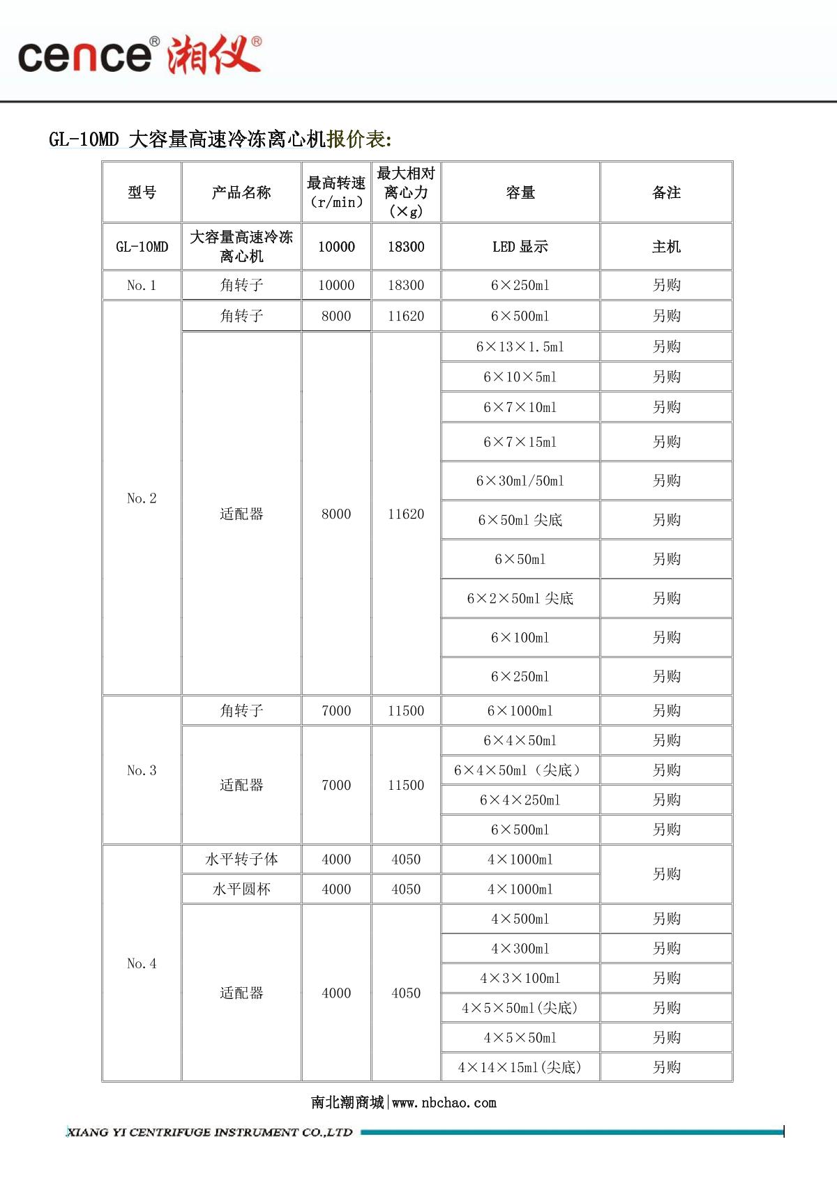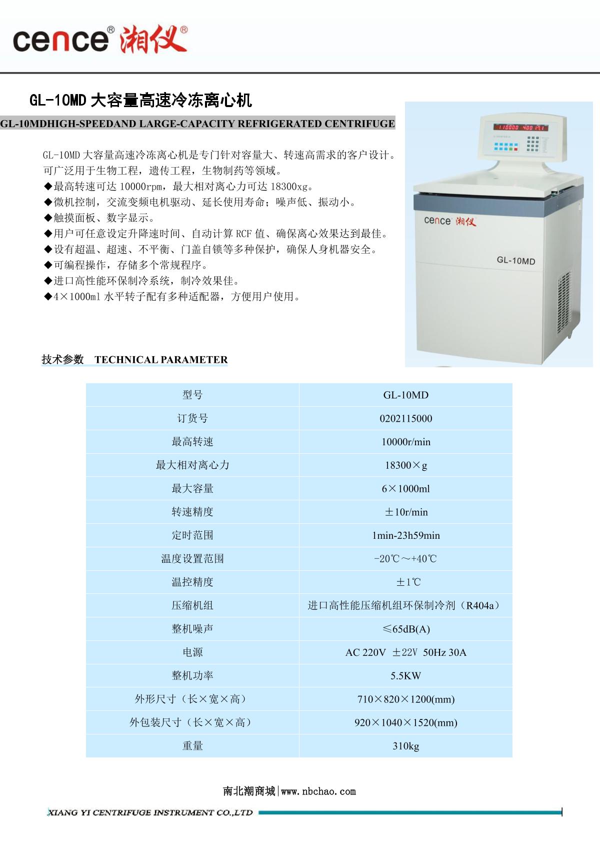 cence GL-10MD Large Capacity High Speed Freezing Centrifuge Maximum Centrifugal Force 18300xg brochure