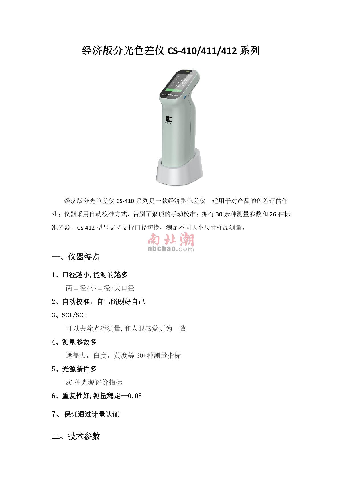 CHNSpec CS-411 Spectroscopic Colorimeter brochure