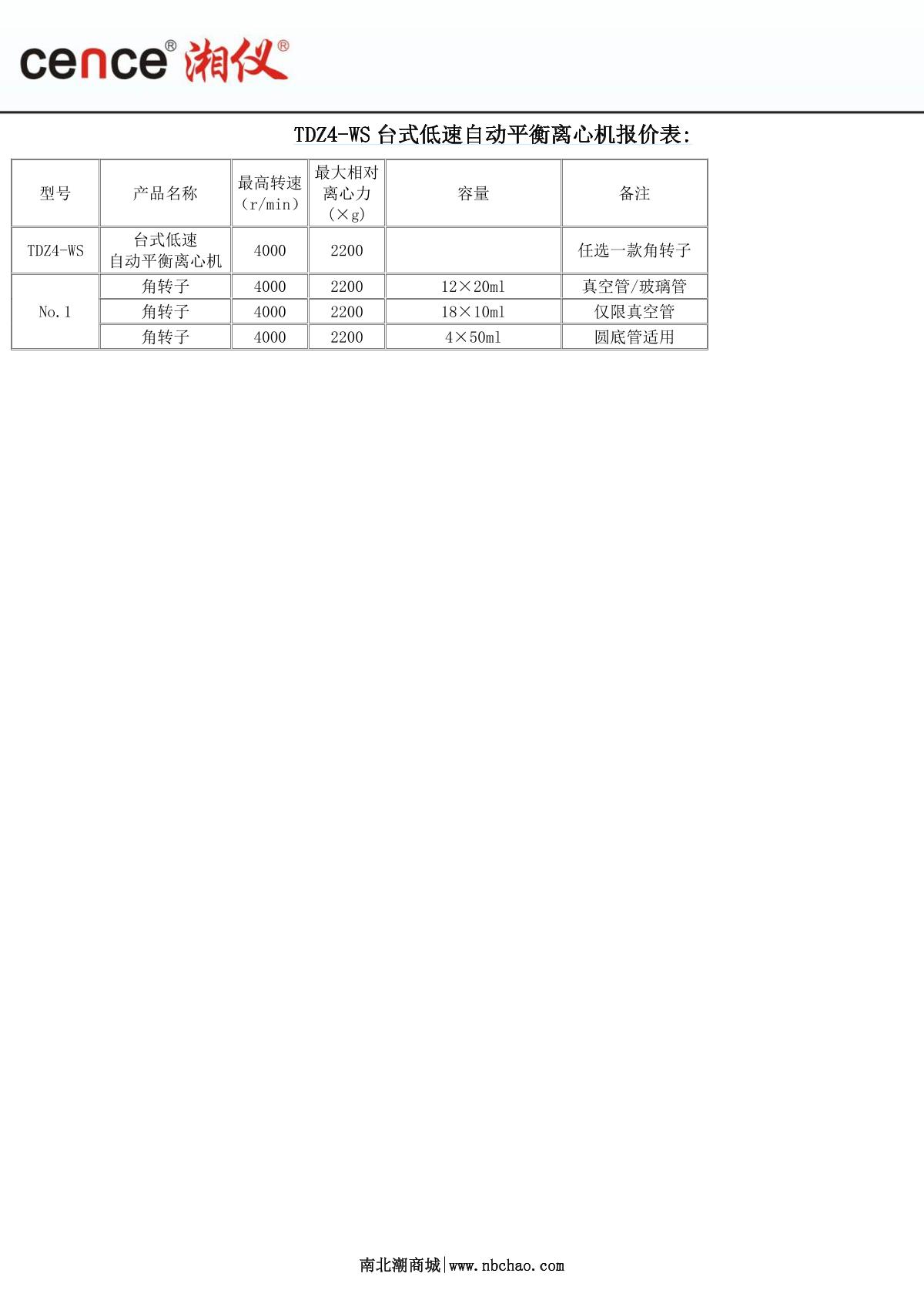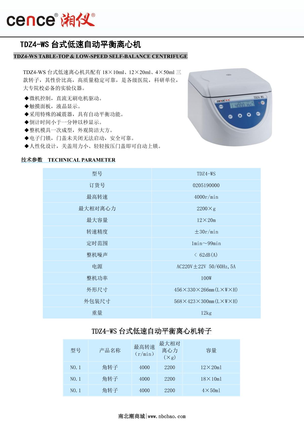 cence TDZ4-WS Desktop Low Speed Automatic equilibrating Centrifuge brochure