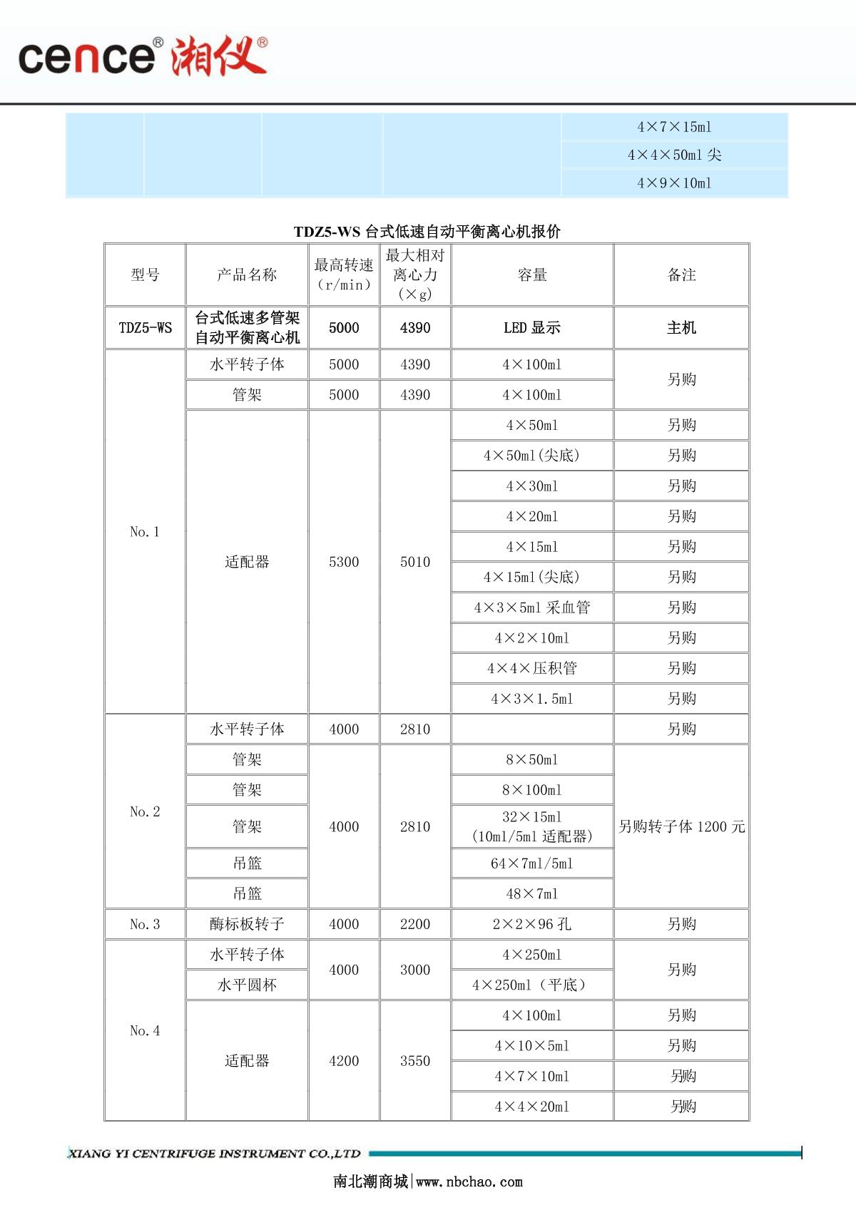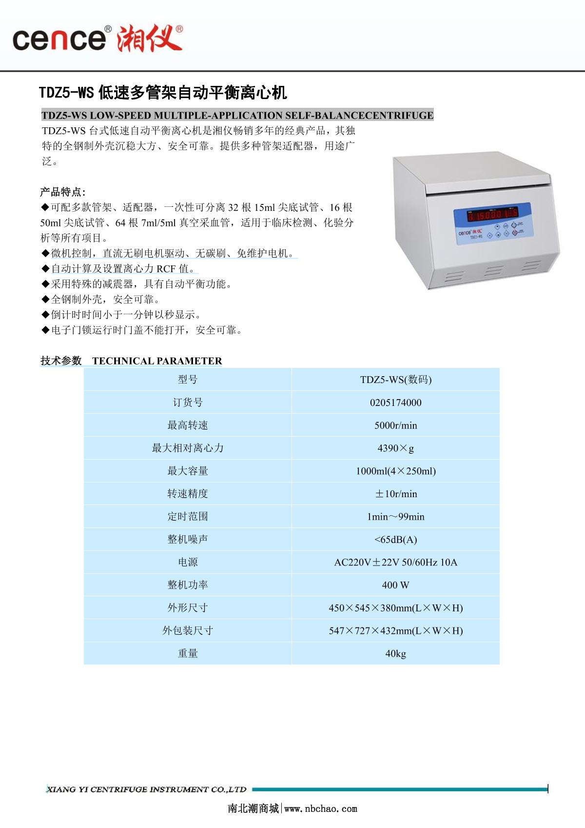 cence TDZ5-WS Low-speed automatic equilibrating Centrifuge brochure