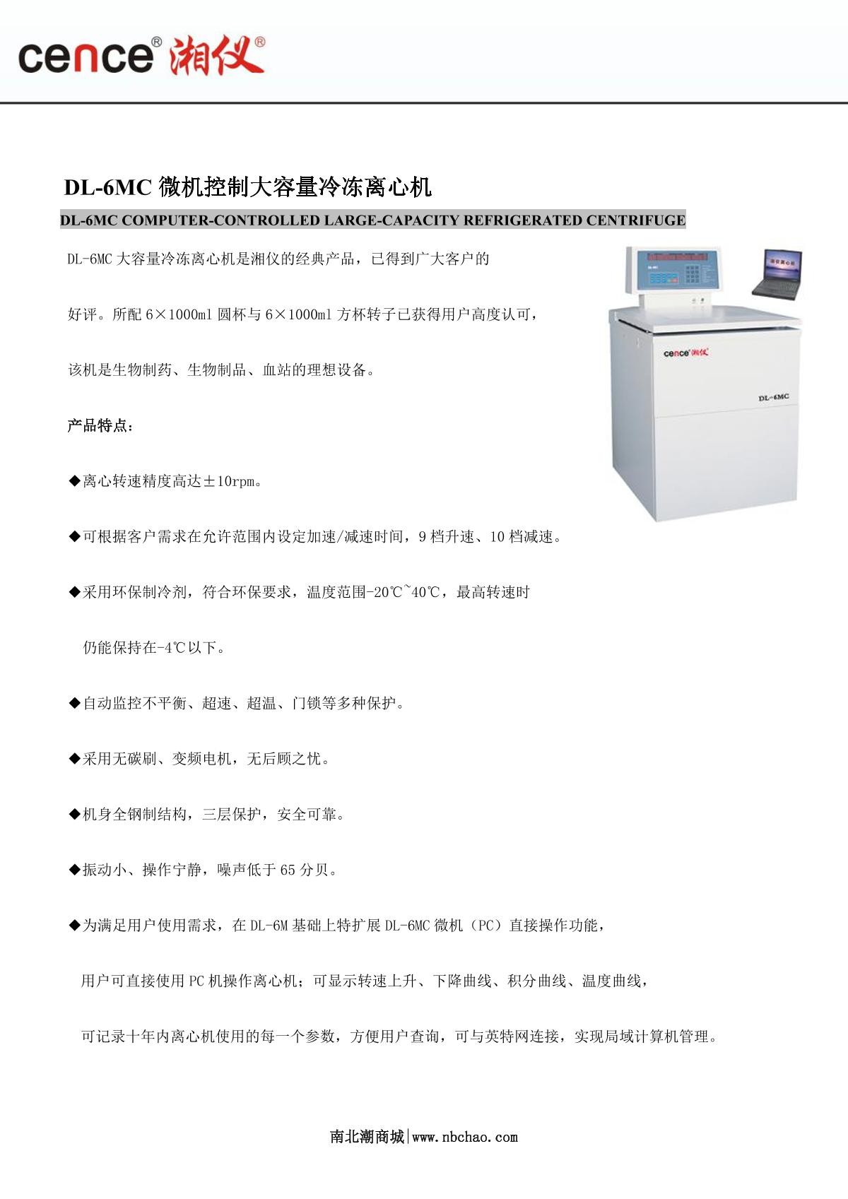 cence DL-6MC Microcomputer Controlled Large Capacity Refrigeration Centrifuge brochure