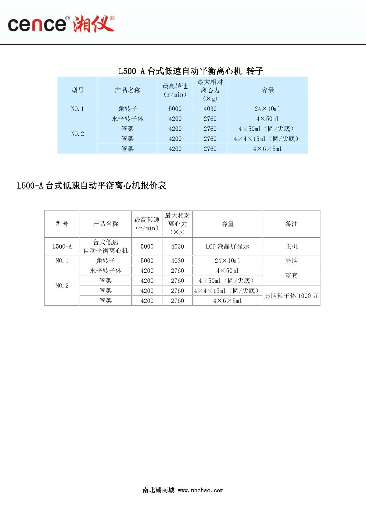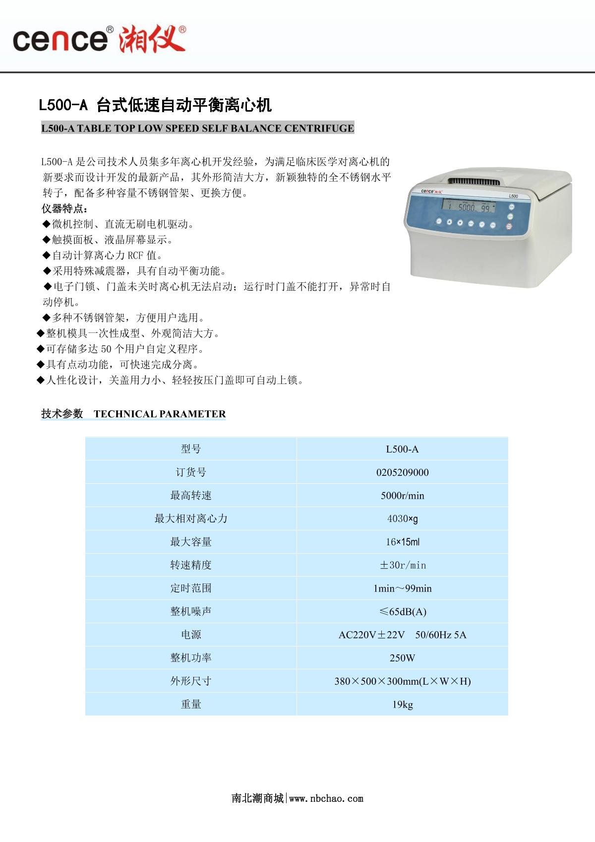 cence L500 Desktop Low Speed Automatic equilibrating Centrifuge brochure