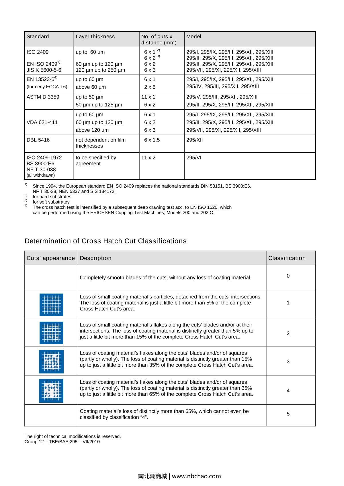 Erichsen erichsen 295/XIII Cross-cut knife brochure