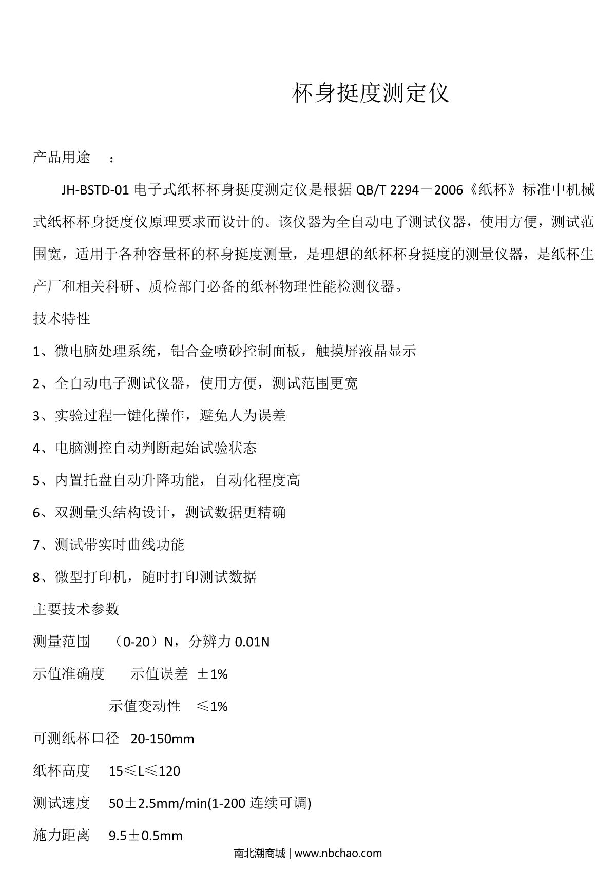 JingHuaYiQi LD-BSTD-01 Cup stiffness Tester brochure