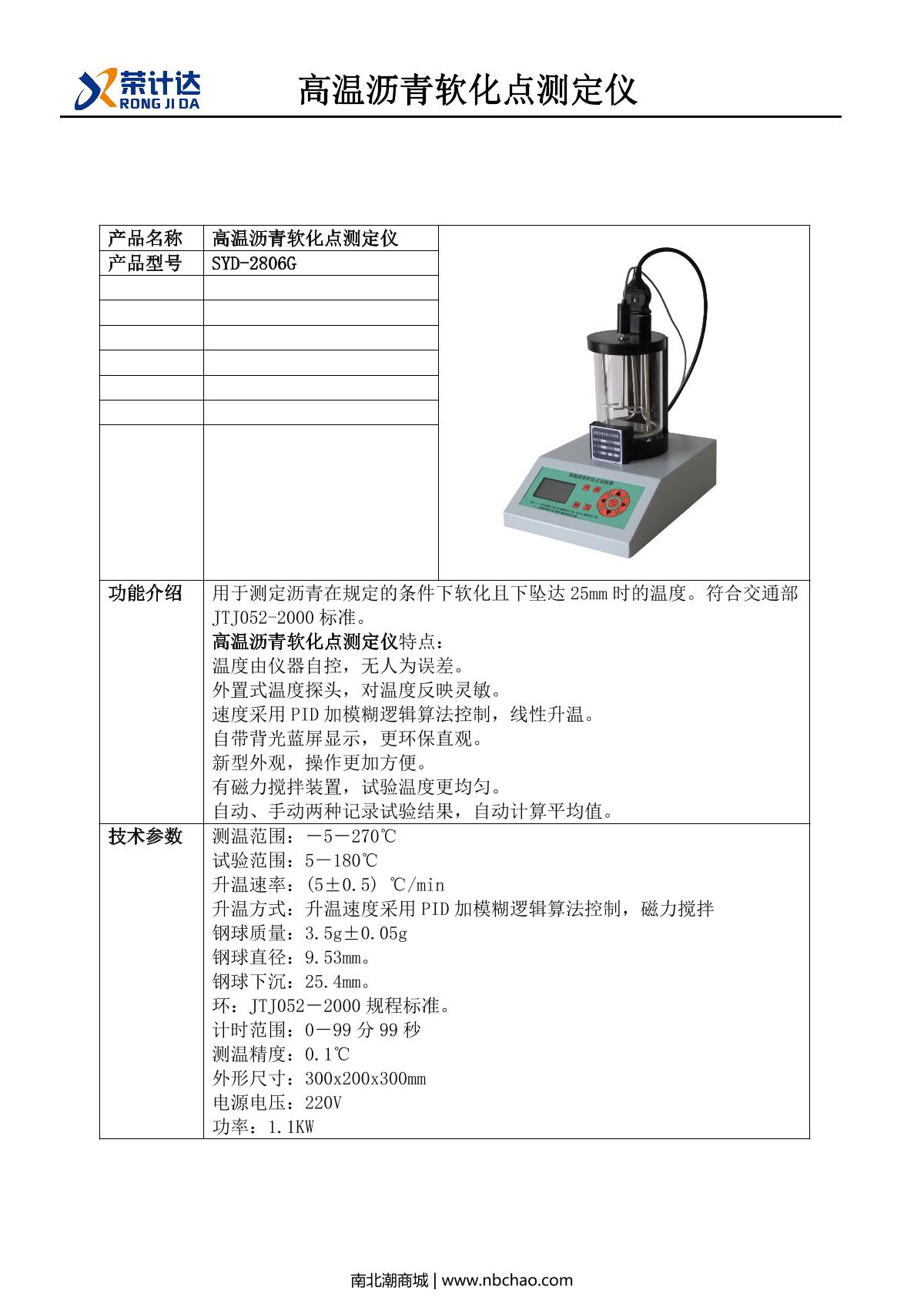 RongJiDa SYD-2806G High temperature asphalt softening point Tester brochure