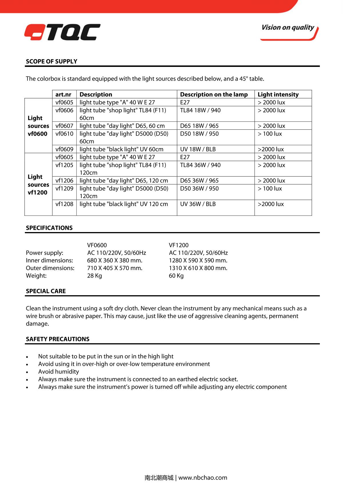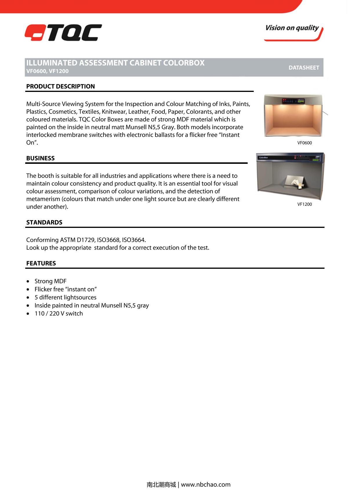 TQC sheen VF0600 Color Assessment Cabinet brochure
