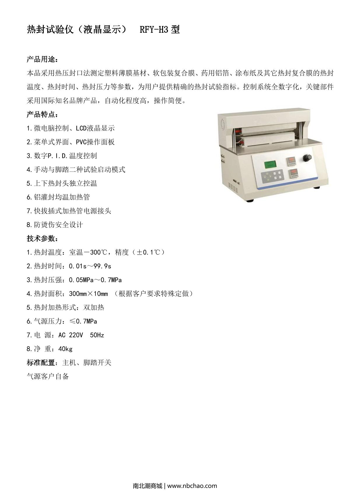 HORIZON RFY-H3 Heat seal Tester Double heating independent temperature controlRT+~300℃0.01s~99.9s0.05~0.7MPa¥12620.0SE -
