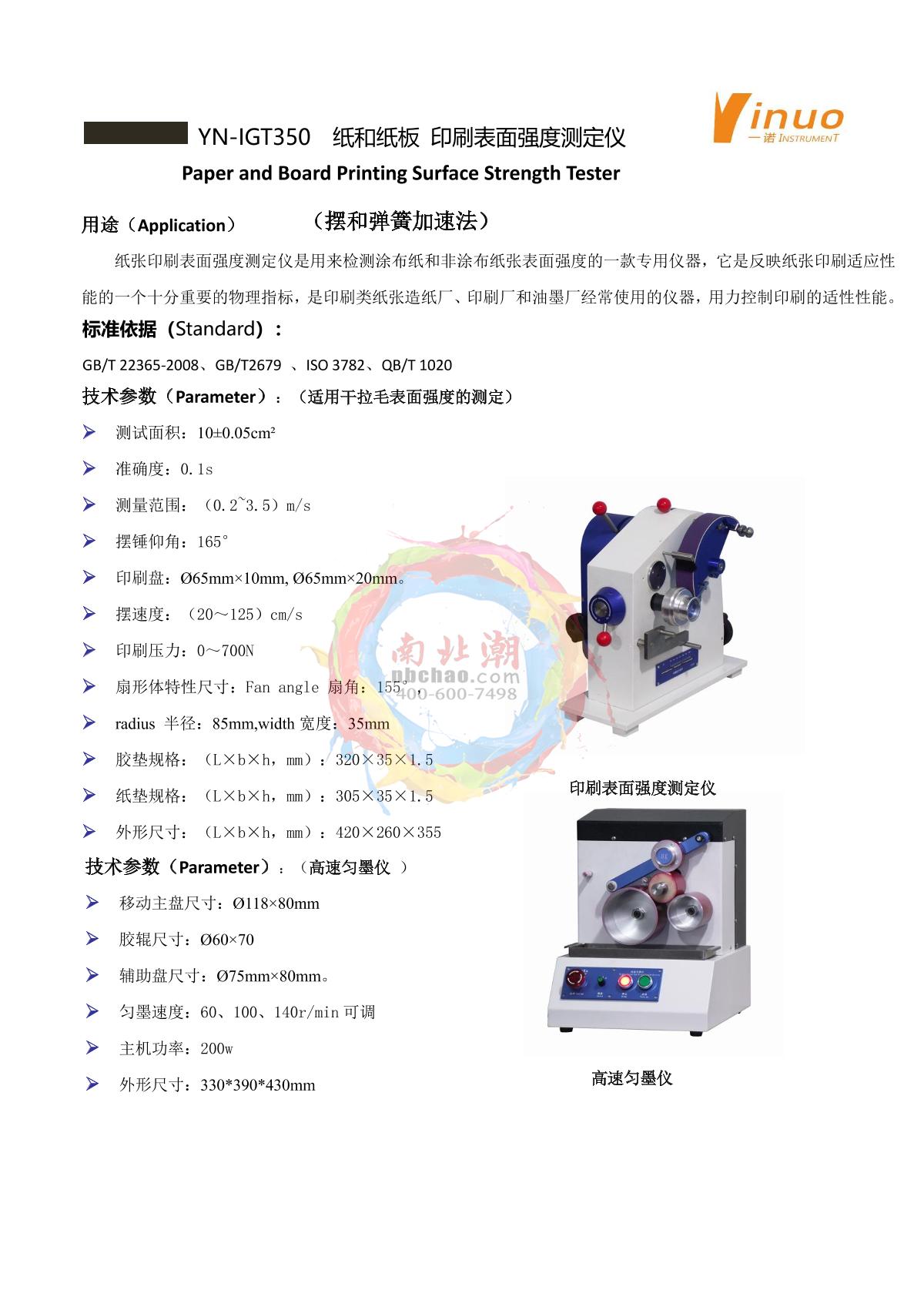 YiNuo YN-IGT350 Paper Surface Strength Tester (Printability Tester) brochure