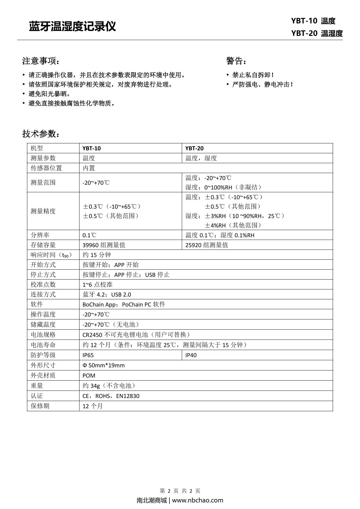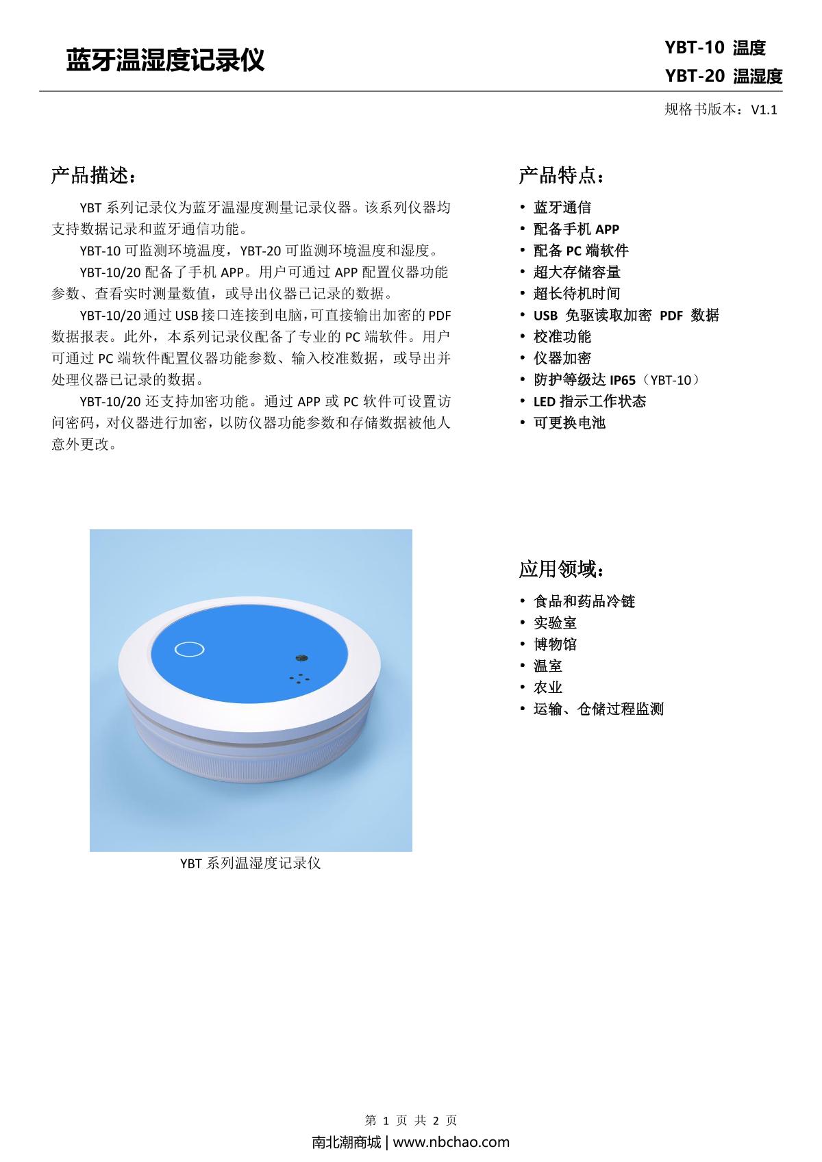 - 1YOWEXA YBT-10 Temperature Recorder brochure