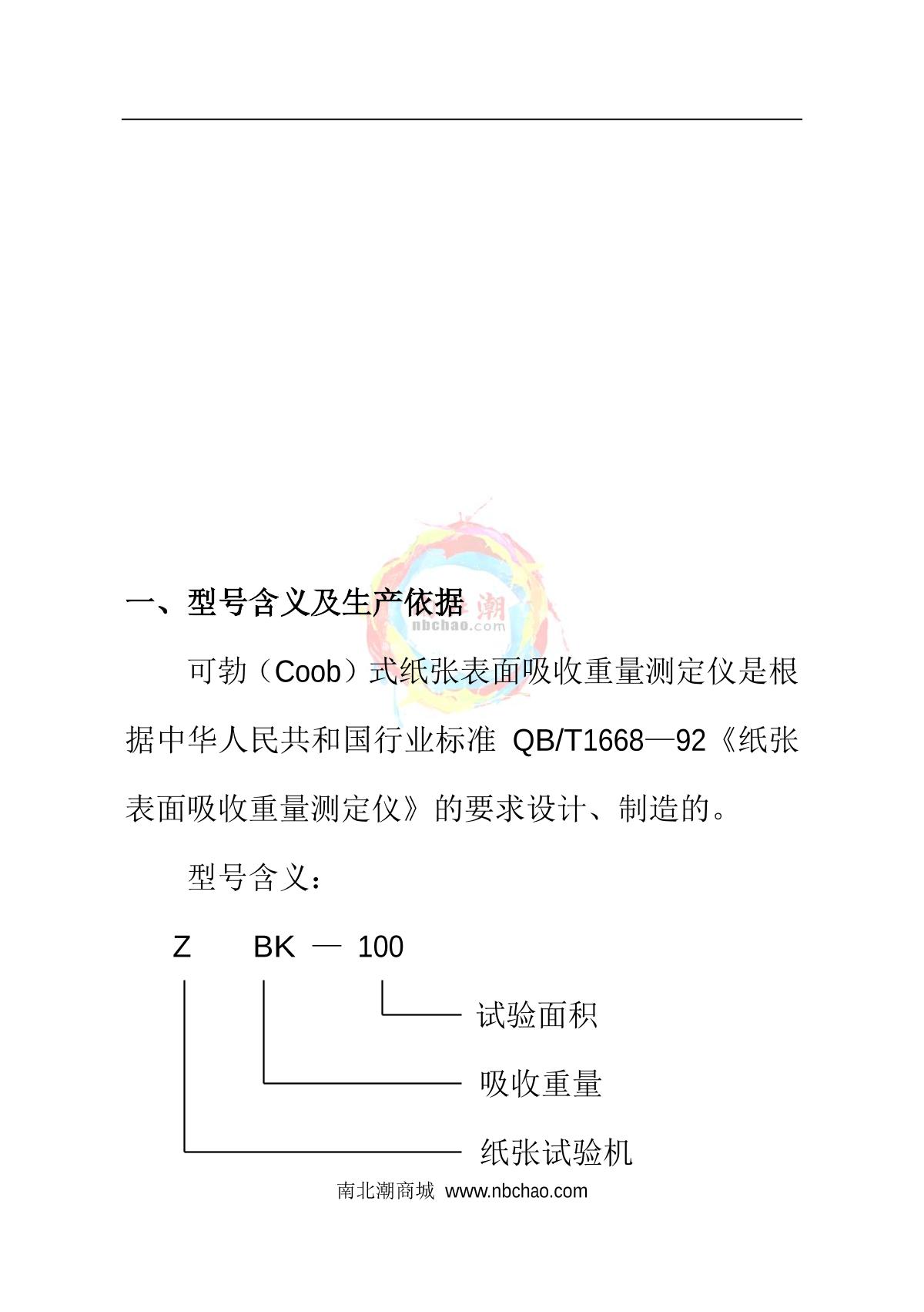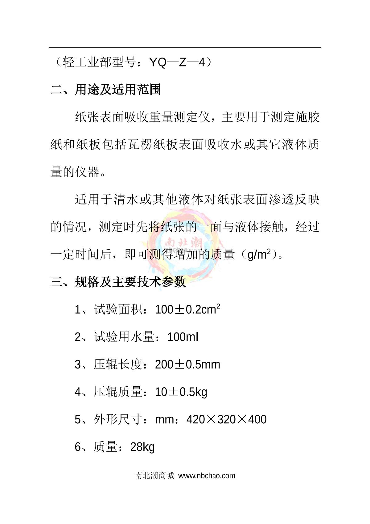 - 2ChangChunYongXin ZBK-100 Paper surface absorption weight Tester Manual