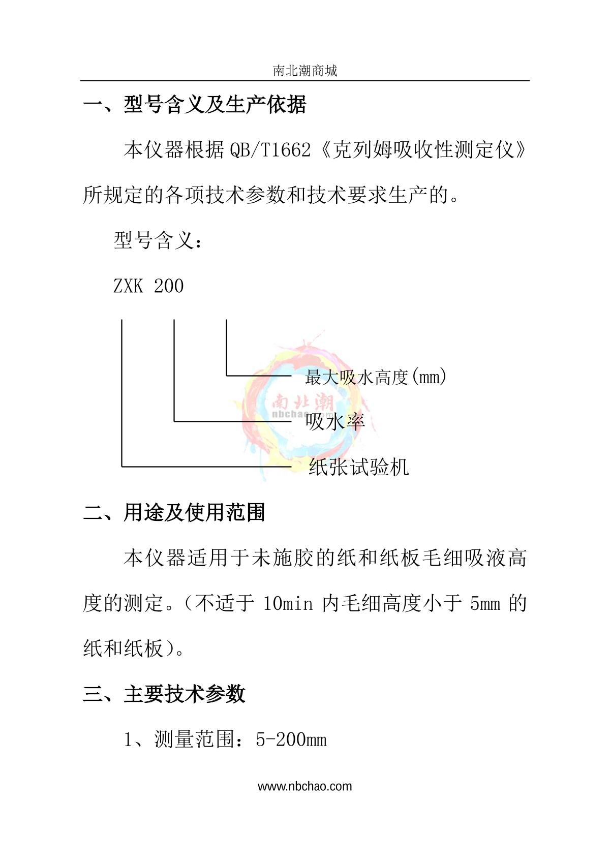 ChangChunYongXin ZXK-200 Paper Water Absorption Tester Manual,OI