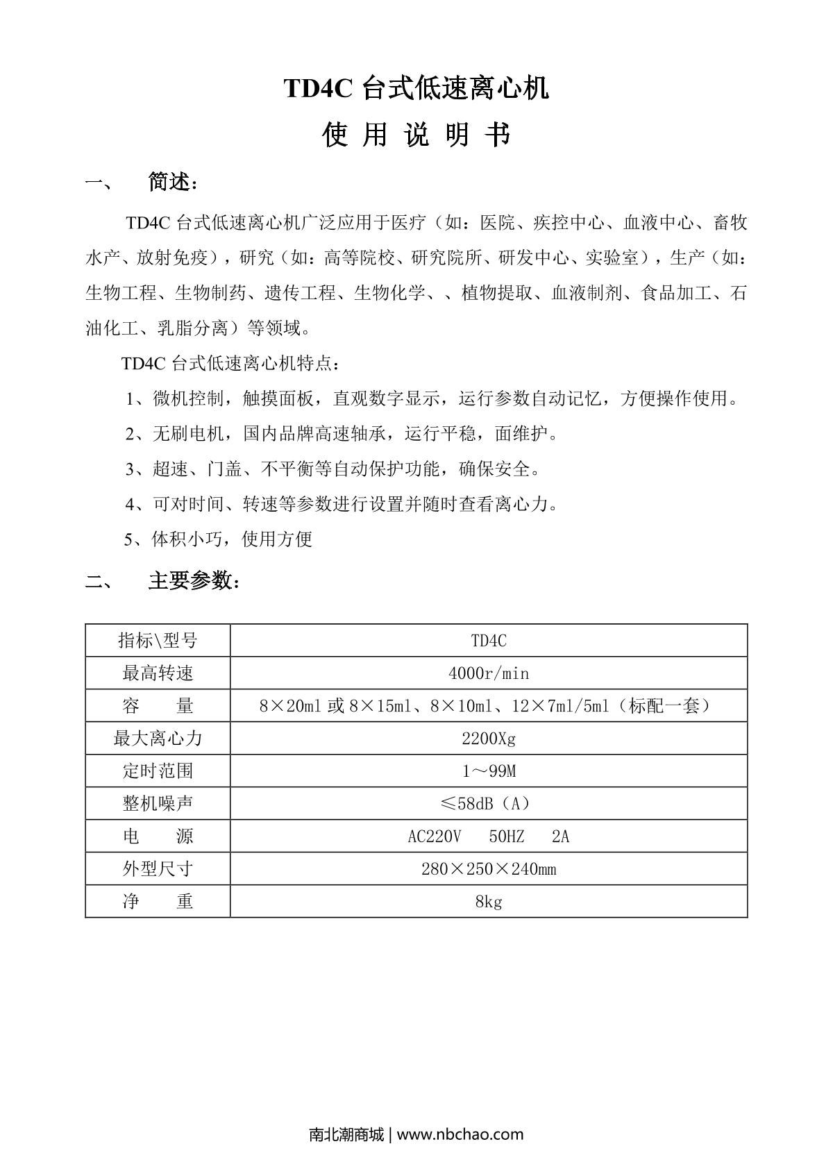 - 2HongHua TD4C Desktop Low Speed Centrifuge brochure