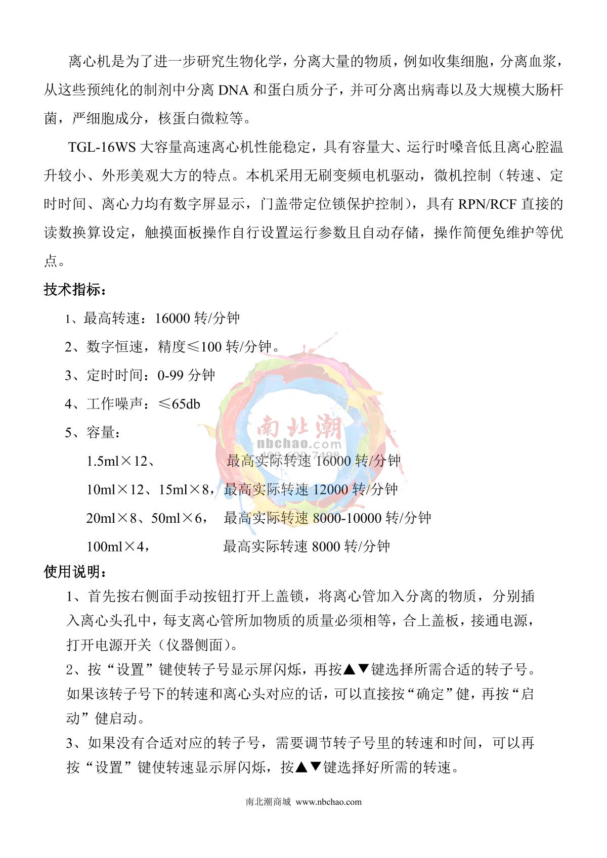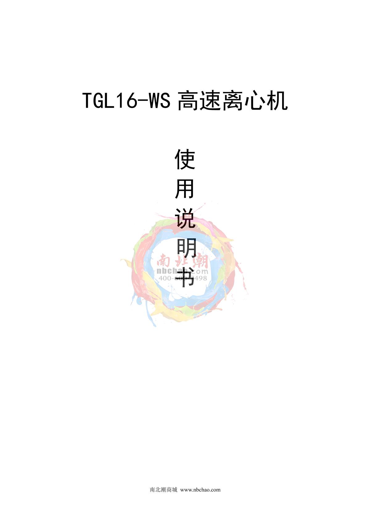 HongHua TGL-16WS Desktop Large Capacity High Speed Centrifuge Manual,OI