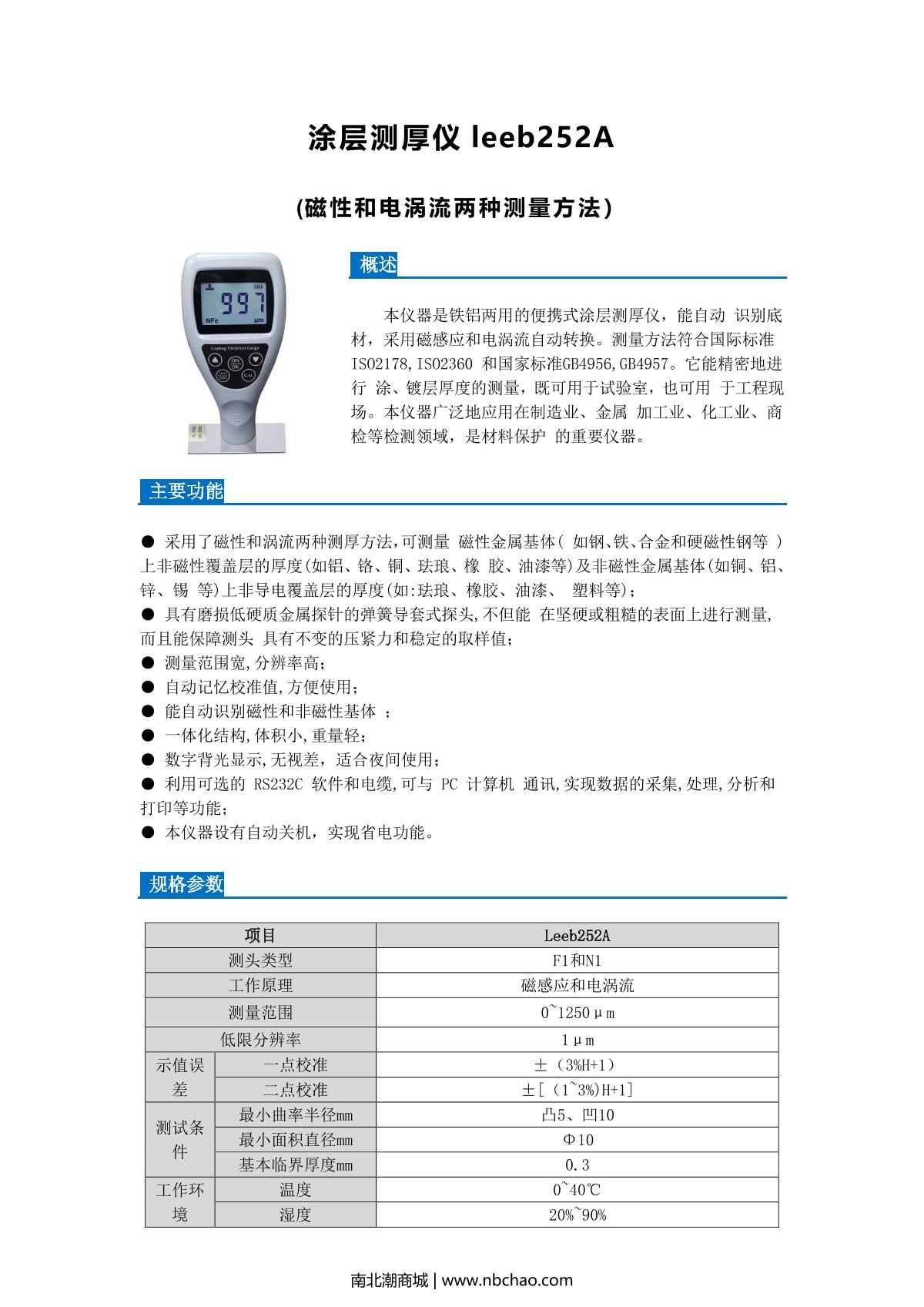 Leeb220 Magnetoresistive Thickness Gauge, Non-Magnetic Coating on Magnetic Metal Substrate Film thicknessmagnetic induction0 ~ 1250µm±3%SE -