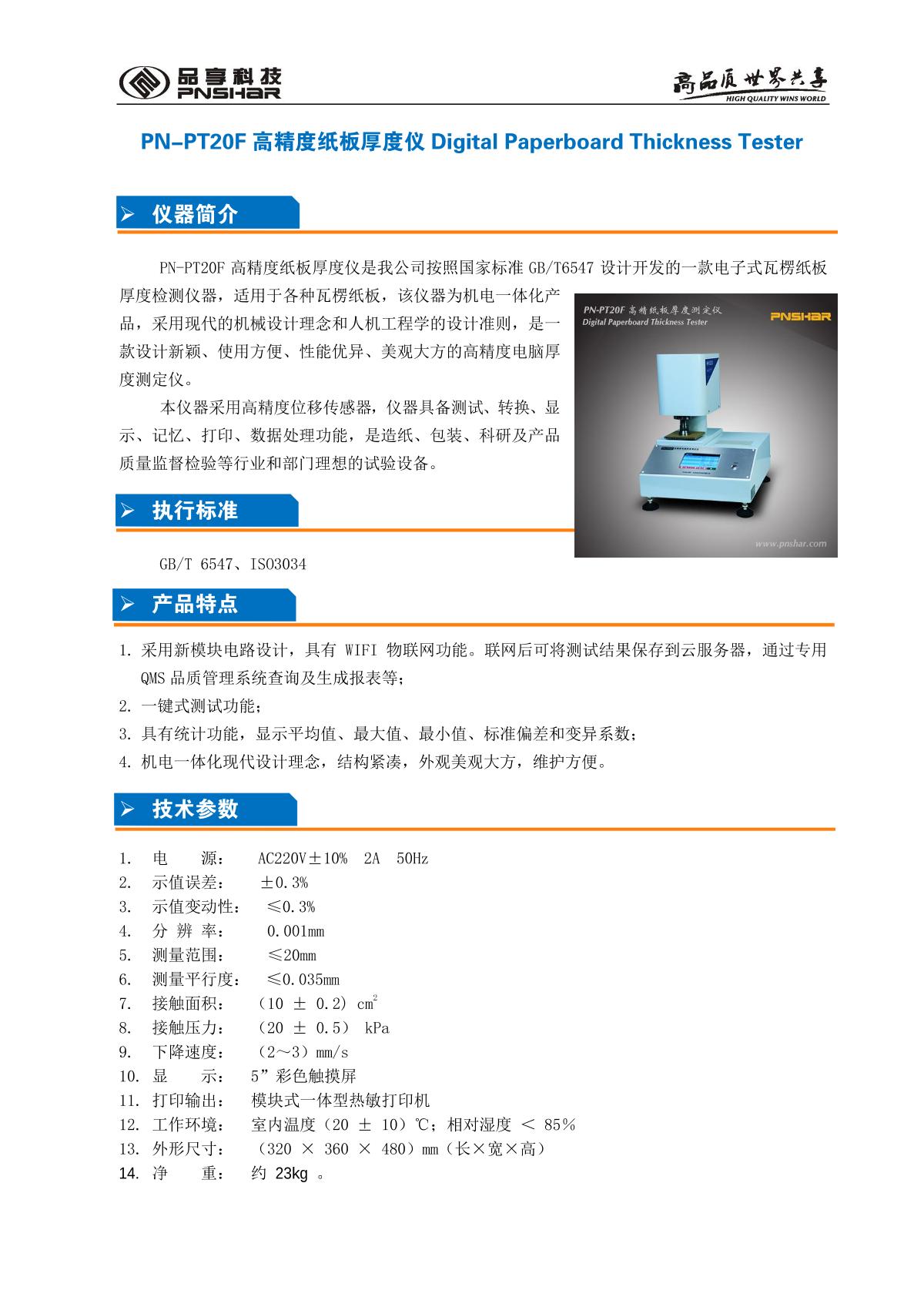PNshar PN-PT20F High-precision Cardboard thickness Tester brochure