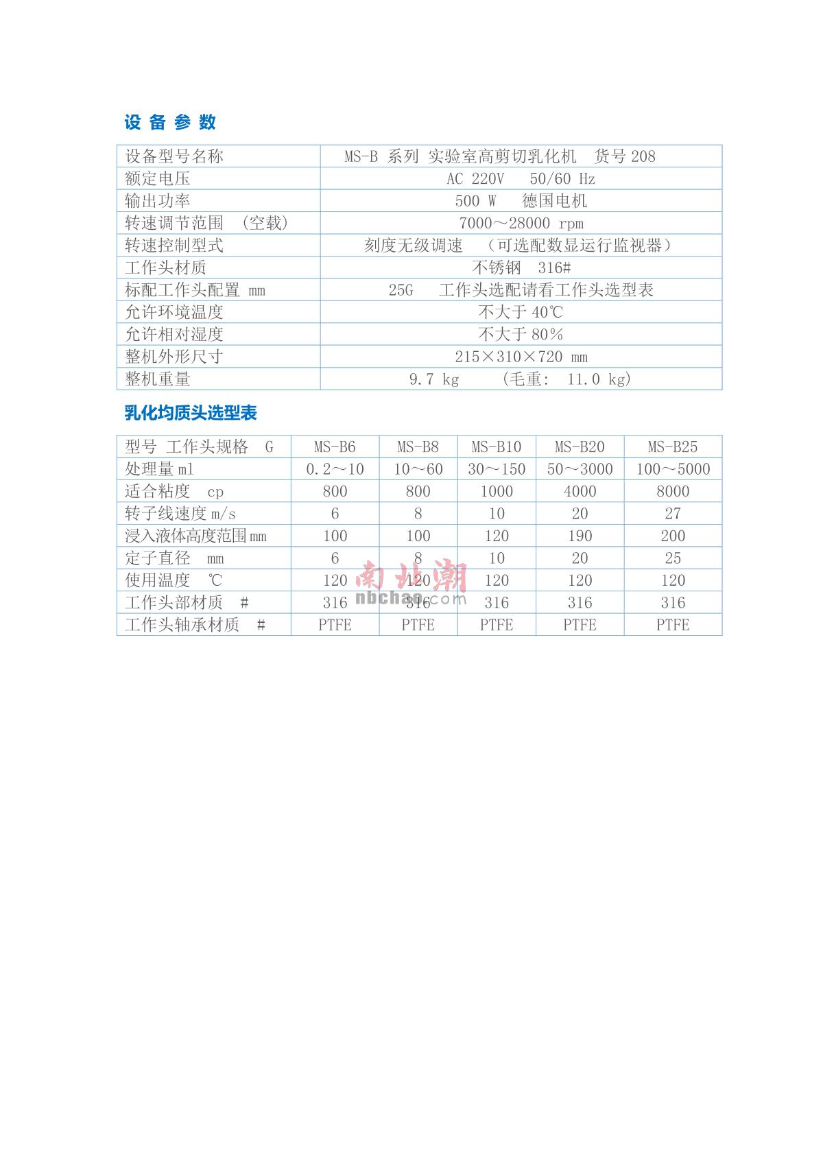 MuXuan MS-B25 Laboratory High Shear Mulser brochure